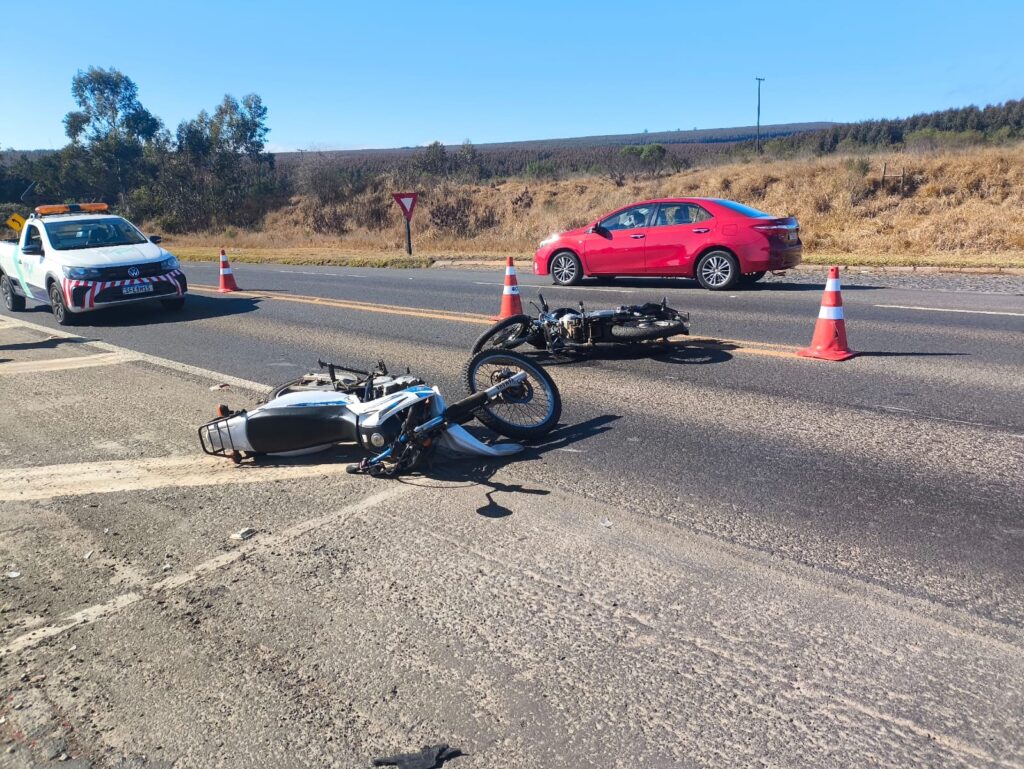 Um acidente envolvendo duas motocicletas foi registrado na manhã desta quarta-feira (9) na rodovia PR-151, no quilômetro 124, no trecho entre Jaguariaíva e Sengés, nos Campos Gerais do Paraná. O sinistro do tipo abalroamento transversal deixou duas pessoas feridas, ambas adolescentes, com lesões leves.