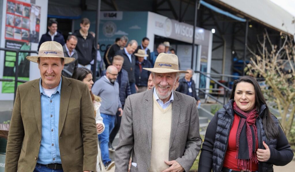 PRESENÇAS – Também estiveram presentes na cerimônia de abertura da Agroleite os secretários Alex Canziani (Inovação e Inteligência Artificial), Aldo Bona (Ciência, Tecnologia e Ensino Superior) e Valdemar Bernardo Jorge (Justiça e Cidadania); o prefeito de Castro, Reinaldo Cardoso; a prefeita de Carambeí, Elisangela Pedroso; a prefeita de Ponta Grossa, Elizabeth Schmidt; e os deputados estaduais Marcelo Rangel e Luís Corti.