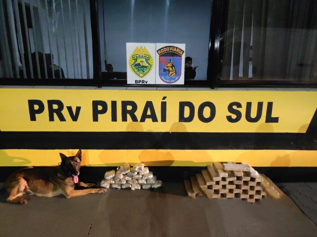 Na madrugada desta segunda-feira (1º), a Polícia Militar Rodoviária (PMPR), por meio da 5ª Companhia do Batalhão de Polícia Rodoviária (BPRv) e da equipe de Operações com Cães, apreendeu mais de 31 quilos de drogas durante fiscalização na PR-151, no km 265, em Piraí do Sul.