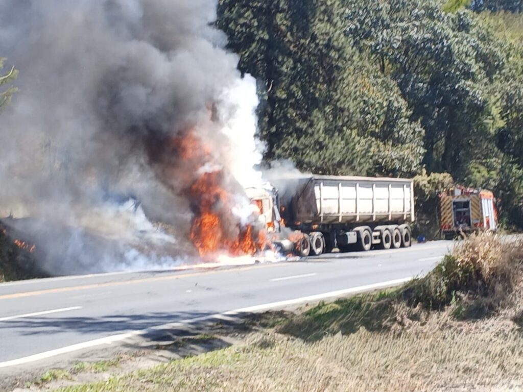 Na manhã desta quarta-feira (17), por volta das 10h40, um caminhão carregado com açúcar foi completamente tomado pelas chamas na PR-092, no km 202, entre Jaguariaíva e Arapoti. O veículo, uma Scania com placas de Santo Antônio da Platina, seguia no sentido Arapoti-Jaguariaíva quando o incêndio ocorreu, cujas causas ainda não foram esclarecidas.