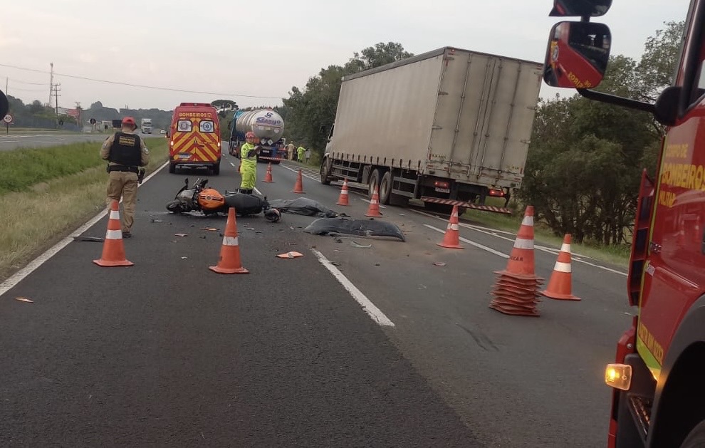 De acordo com a Polícia Rodoviária Estadual (PRE), a colisão envolveu uma motocicleta Honda CBR 650F e um Ford Fiesta, ambos com placas de Castro. O condutor da moto não resistiu aos ferimentos e morreu no local.