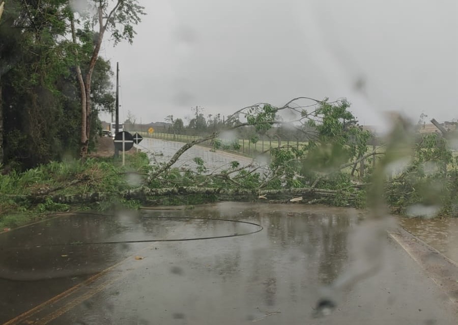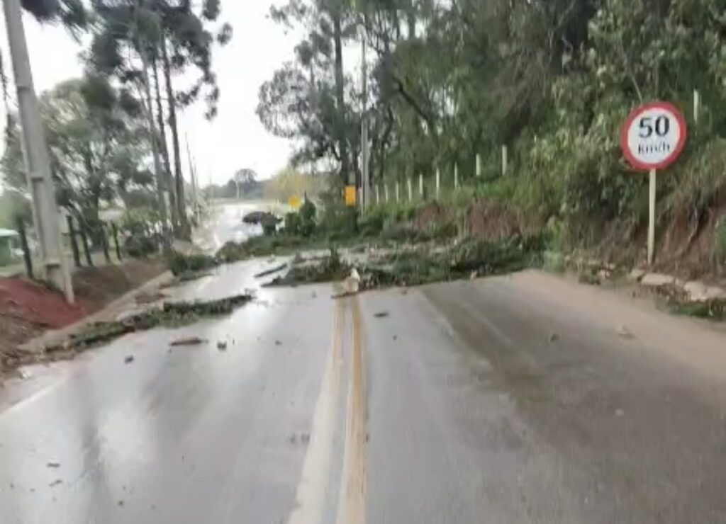 Uma forte chuva registrada no início da tarde deste domingo (21) causou estragos e transtornos na região do Catanduvas, em Carambeí. Diversas árvores caíram e chegaram a bloquear trechos da estrada, dificultando a passagem de veículos e moradores.