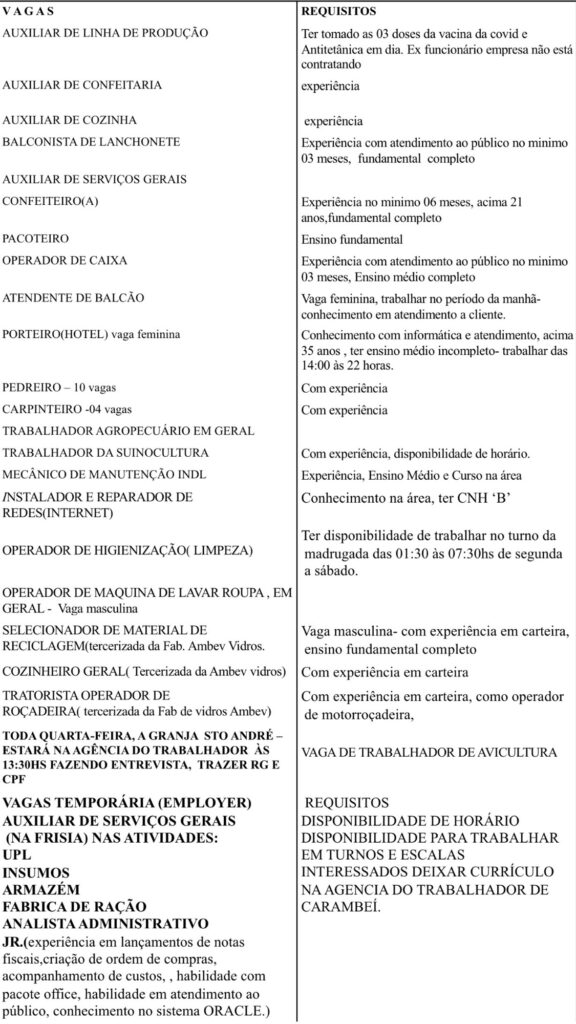 IMPORTANTE – informações sobre vagas não são fornecidas por telefone. As vagas são atualizadas diariamente, permitindo que os candidatos acompanhem as novas oportunidades disponíveis no município.