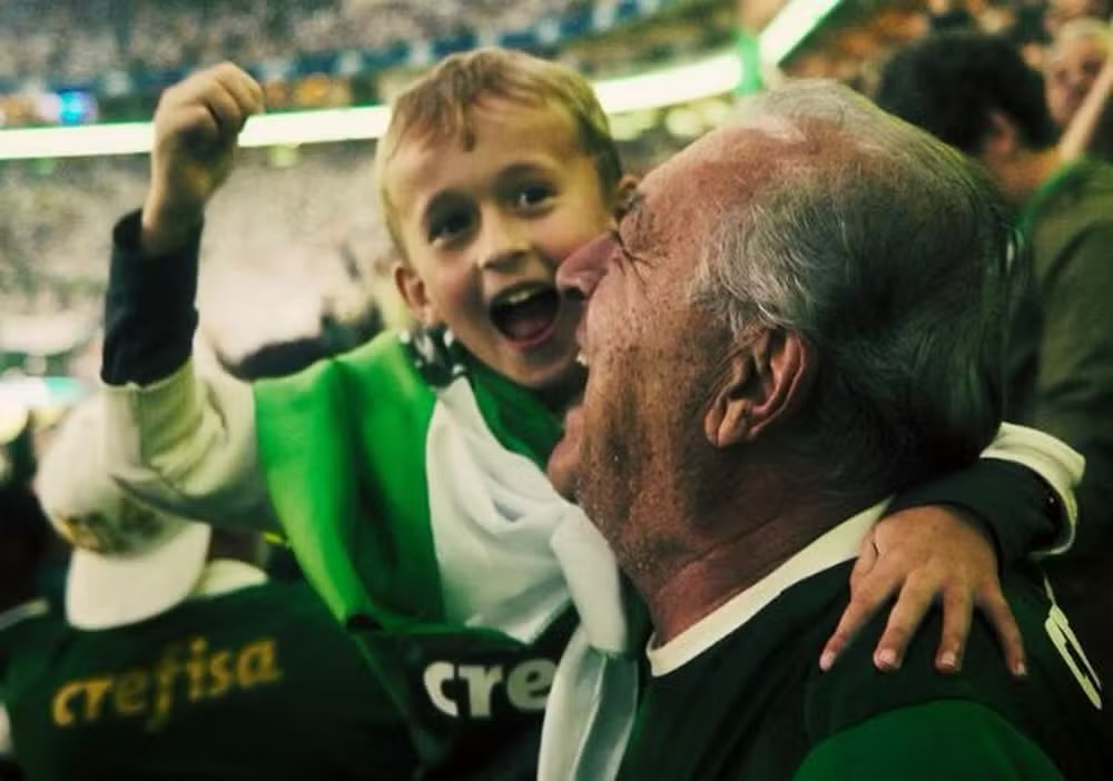 Em seguida, há cenas de Afonso torcendo, cantando as músicas do Palmeiras, vibrando e até chorando de emoção ao ver os gols do time. “Estamos na final! Que virada histórica”, escreve Brian Baldrati, fotógrafo, criador de conteúdo e filho de Afonso, na legenda da publicação.