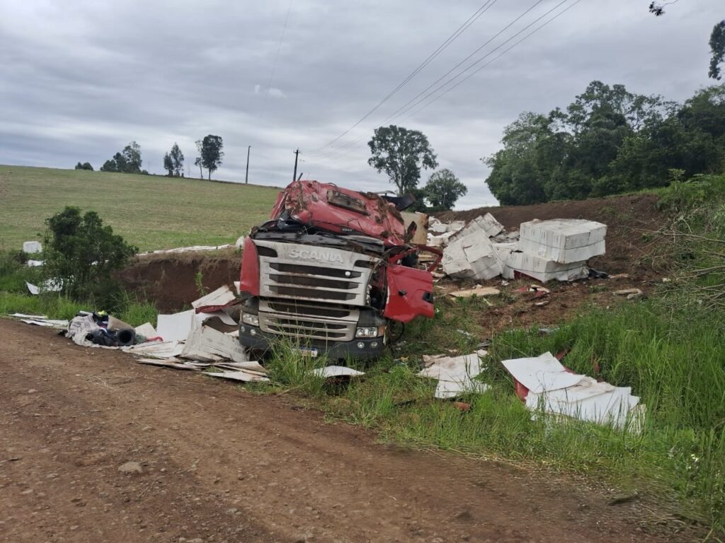 De acordo com informações colhidas pela equipe policial, o caminhão Scania R400, emplacado em Sarandi, seguia sentido Manoel Ribas acoplado a dois semirreboques quando o condutor, de 33 anos, perdeu o controle da direção. O veículo saiu da pista e caiu em uma área fora do leito da rodovia.