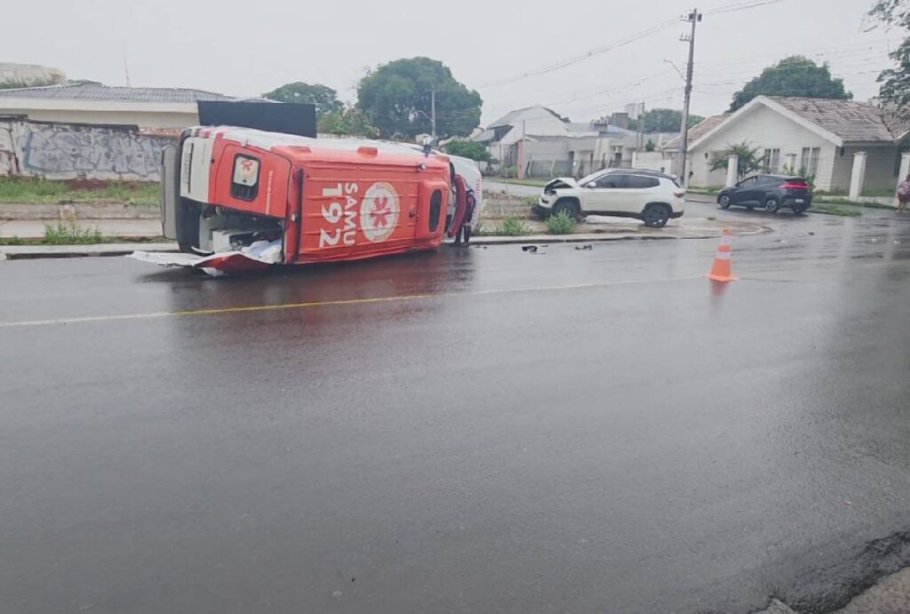 Ambulância tomba após acidente em Maringá