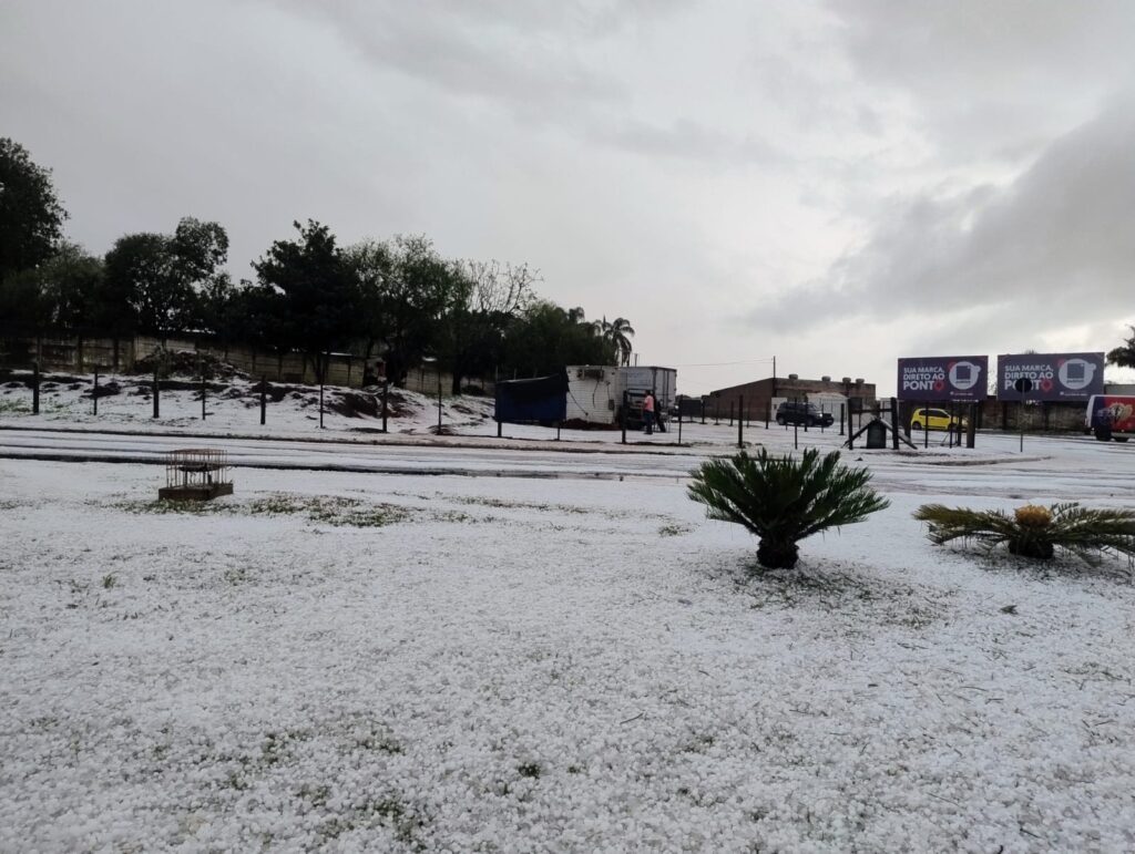 Moradores de Ponta Grossa registraram grande quantidade de pedras de gelo caindo em curto espaço de tempo, cobrindo ruas, calçadas e veículos.