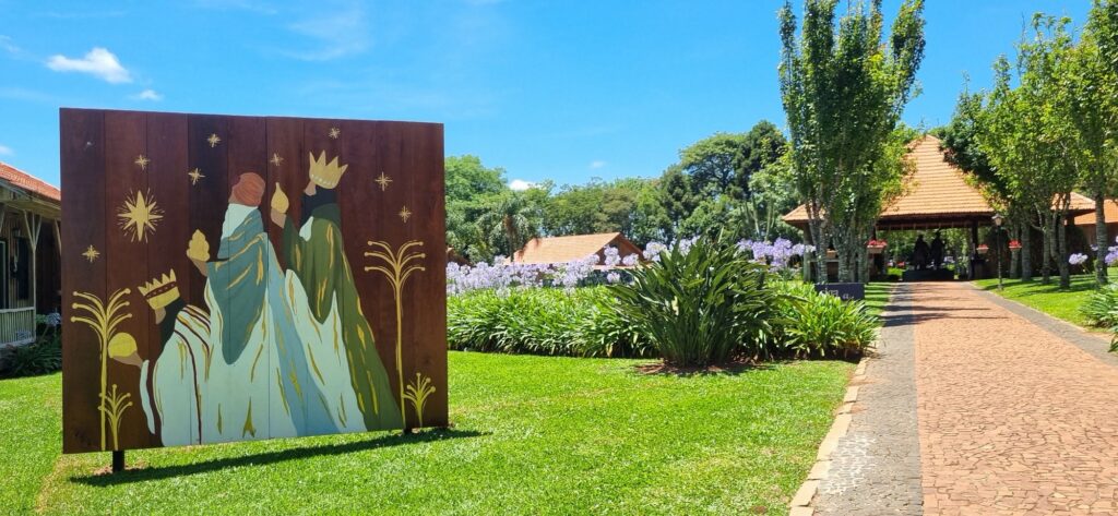 Jessica explica como foi desenvolvido o projeto do 15º Natal no Parque: “trata-se de uma proposta simples, bonita e emocionante, que convida o público a percorrer, com leveza e espírito natalino, a história do nascimento de Jesus, guiada pela Jornada dos Magos do Oriente”.