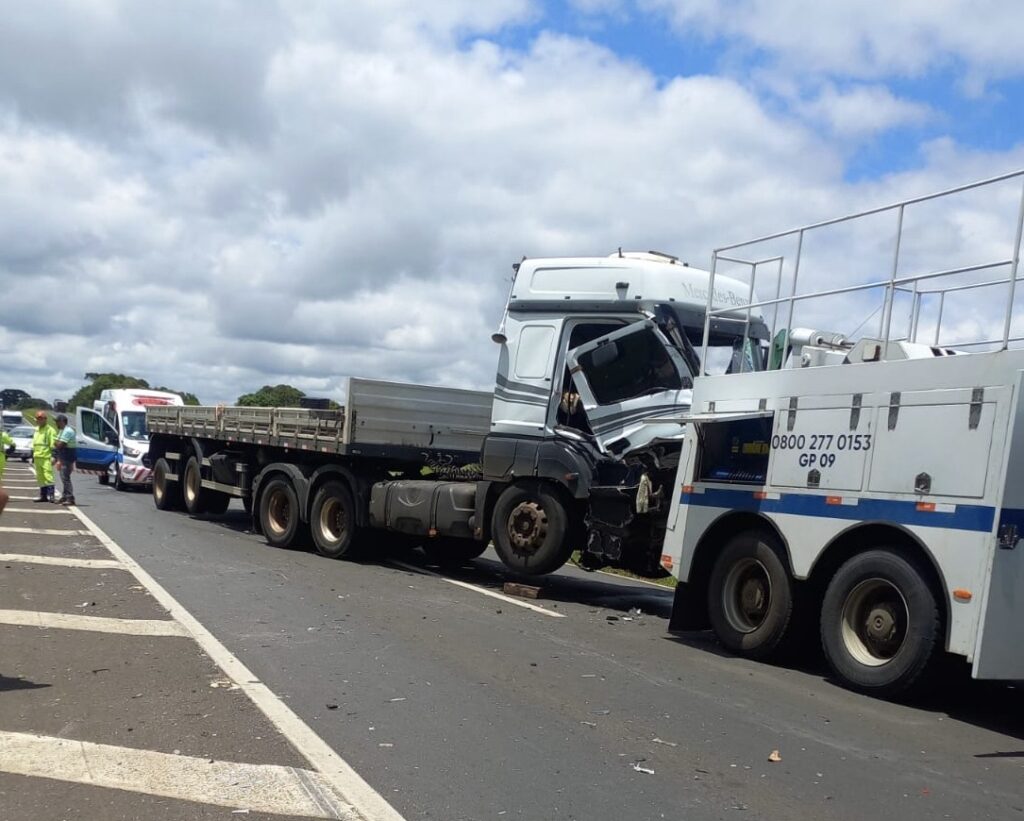 Em razão do acidente, um dos caminhões ficou imobilizado sobre a pista, sendo necessário desviar o trânsito provisoriamente por uma via de acesso de retorno, até a normalização do fluxo.