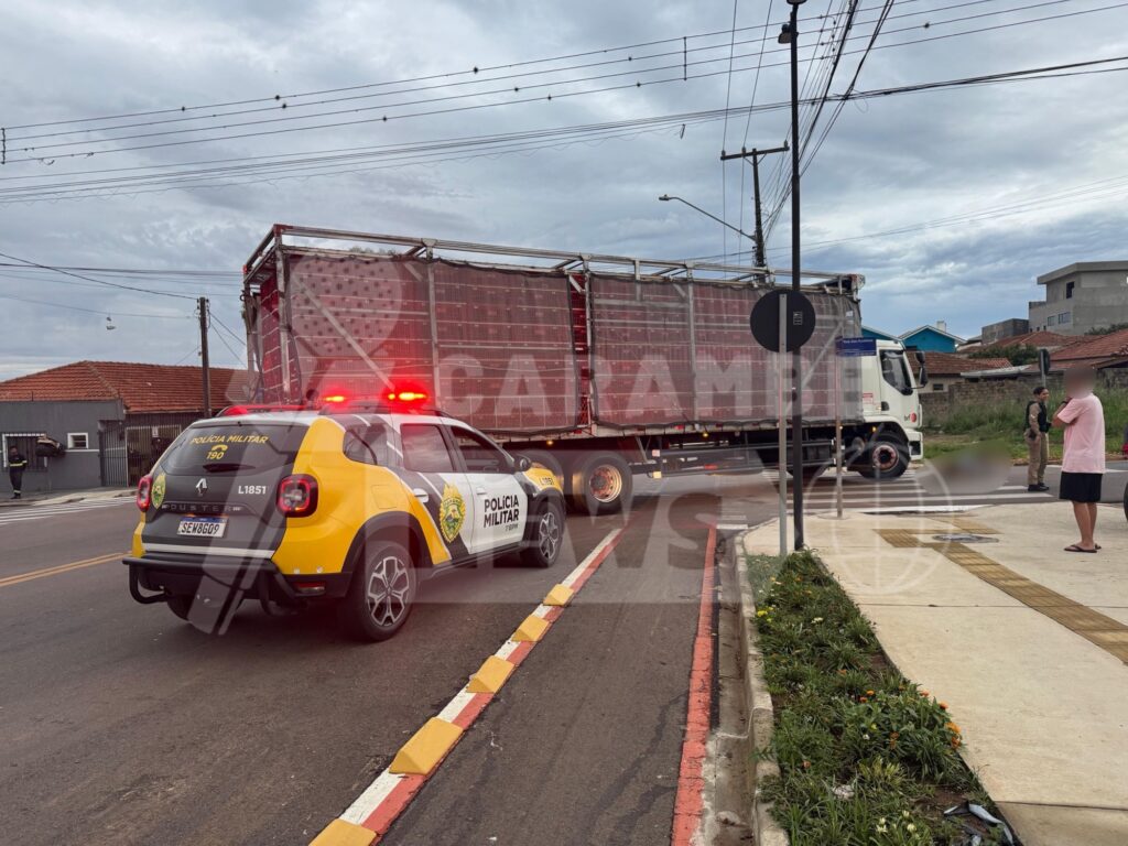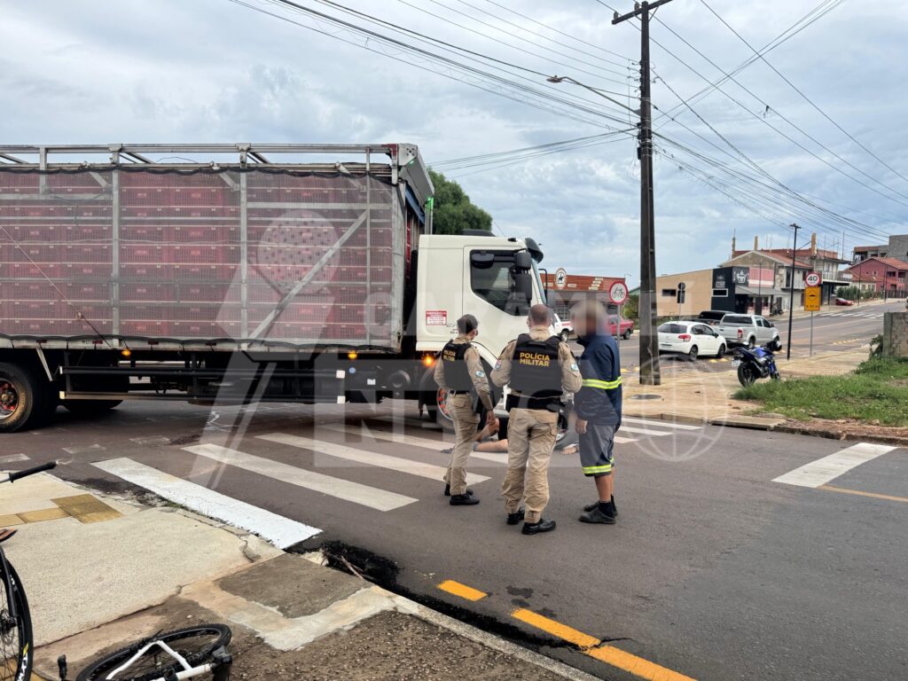 Um acidente de trânsito foi registrado na noite desta terça-feira (17), no cruzamento da Avenida das Flores com a Rua das Azaleias, em Carambeí. A ocorrência envolveu um caminhão e uma bicicleta conduzida por um jovem.