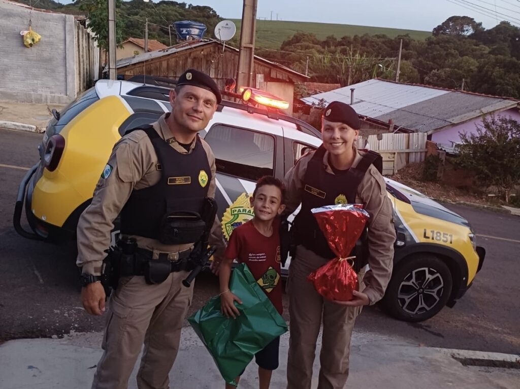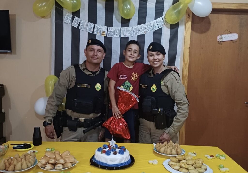 Na tarde da última quinta-feira (19), uma comemoração de aniversário no bairro Bela Vista 3, em Carambeí, ganhou um significado ainda mais especial com a presença da Polícia Militar. Os soldados Gerytch e Klenk atenderam ao convite da família do pequeno Bernardo e participaram da celebração, surpreendendo o aniversariante.