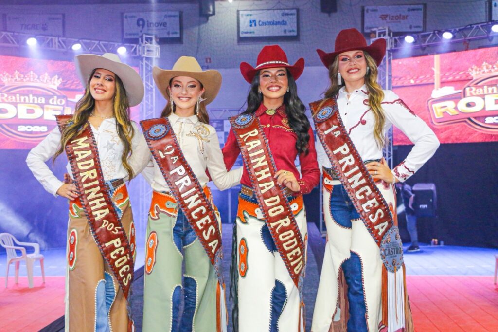 A grande vencedora da noite foi Layza Silva, de 22 anos, eleita Rainha do Rodeio de Castro 2026. Também foram escolhidas Eduarda Borges, 24 anos, como 1ª Princesa, Malu Biássio, 22 anos, como 2ª Princesa, e Ellen Thalia, 19 anos, como Madrinha dos Peões.