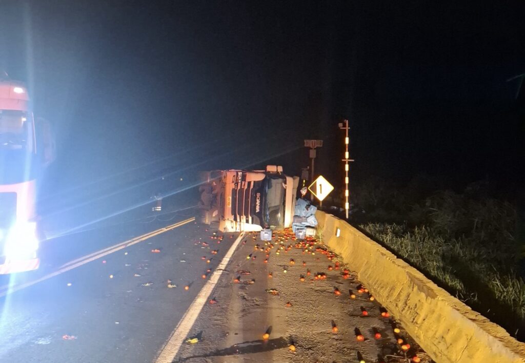De acordo com informações da Polícia Rodoviária Estadual, o acidente ocorreu por volta das 2h20, quando um caminhão Scania, acoplado a um semirreboque e carregado com tomates, trafegava pela rodovia e acabou tombando nas proximidades do km 195 no trecho entre Jaguariaíva e Sengés.