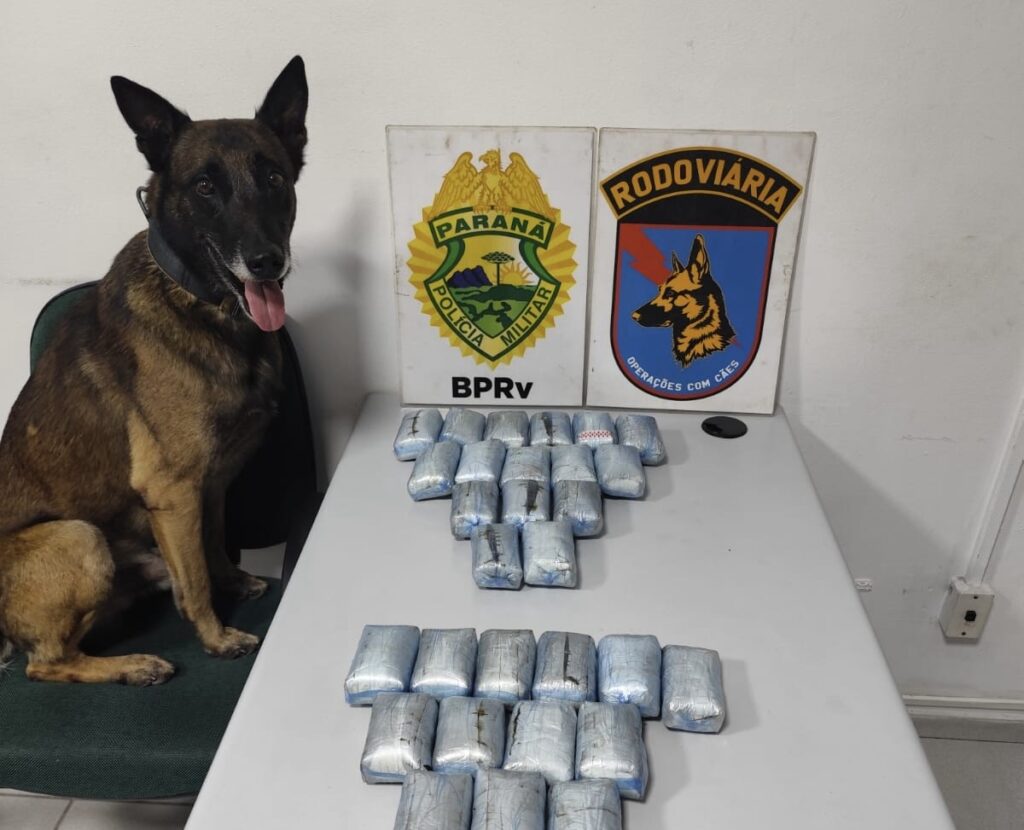 A ação foi registrada na PR-151, no km 265, no município de Piraí do Sul, onde o cão de detecção Máximus indicou a presença de substância ilícita em duas passageiras, em abordagens realizadas em momentos distintos.