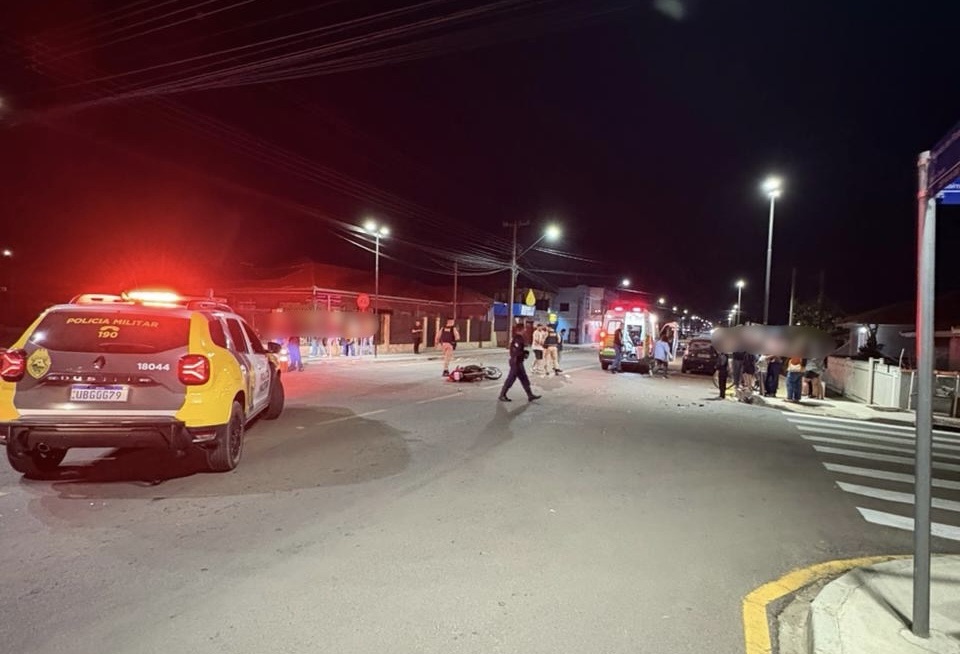 Por volta das 20h25 desta quarta-feira (22), uma colisão entre um automóvel e uma motocicleta foi registrada em Carambeí. O acidente aconteceu na Avenida das Flores, na interseção com a Rua dos Lírios.