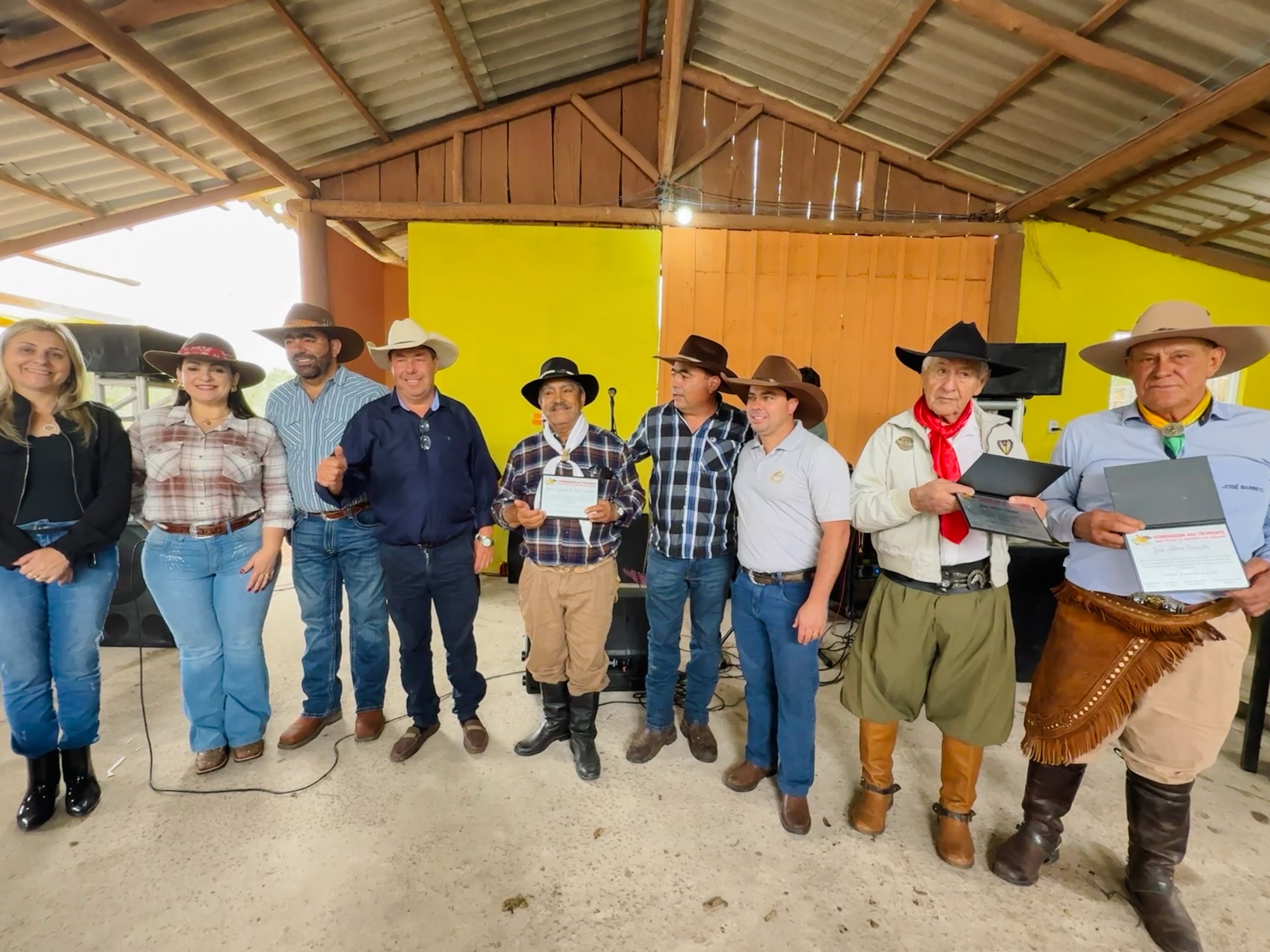 A 2ª Cavalgada dos Amigos, promovida pelos tropeiros de Carambeí neste domingo (16), foi um sucesso e reuniu aproximadamente 70 cavaleiros na chácara de Ilson Caninana, em Catanduvas. O encontro atraiu famílias, apoiadores e admiradores da cultura tropeira, consolidando o evento como um dos mais tradicionais da região. A programação iniciou com o café tropeiro e a bênção dos cavaleiros e animais, seguida da cavalgada de cerca de 10 quilômetros. Ao meio-dia, os participantes foram recebidos com um almoço tropeiro, que contou com leitão assado, arroz, maionese e variedades de saladas. A tarde foi marcada por grandes homenagens aos tropeiros que carregam a história e o legado da tradição em Carambeí. Foram reconhecidos: • José Altair Bueno “Jairo” • João Augusto da Silva Gomes • Eurico Spinardi • José Ailton Barreto As honrarias foram entregues pela prefeita Elisangela Pedroso, pelo vereador Ilson Caninana, além de Eclaiton Bueno, Luiz Carlos Pestana e Marcelo Pestana, que prestigiaram o momento ao lado da comunidade. A festividade seguiu com música ao vivo, tarde dançante e leilão, encerrando um domingo de integração, cultura e valorização dos tropeiros que ajudam a manter viva a tradição no município.