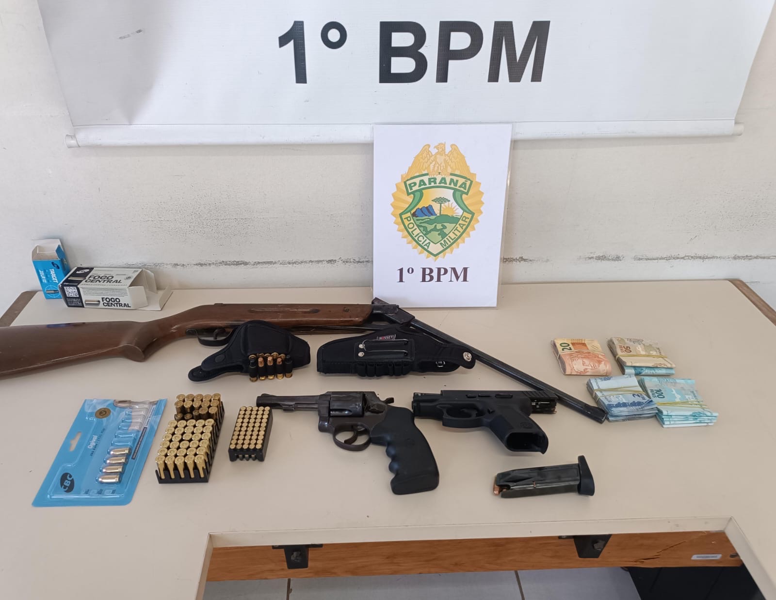 Uma operação integrada entre o Ministério Público do Paraná (MPPR) e a Polícia Militar do Paraná (PMPR) foi deflagrada na manhã desta quarta-feira (12) e resultou no cumprimento de 10 mandados de busca e apreensão em diversos bairros de Ponta Grossa, incluindo Estrela, Uvaranas e Chapada. A ação, iniciada por volta das 6h, teve como objetivo o combate ao tráfico de drogas e à posse ilegal de armas. Durante as diligências, os agentes apreenderam uma expressiva quantidade de entorpecentes, armas de fogo e munições. Entre os materiais apreendidos estão: 680 gramas de crack 890 gramas de murruga 708 gramas de maconha 01 revólver calibre .38 01 revólver calibre .32 01 espingarda calibre .22 01 pistola calibre .380 06 munições calibre .32 50 munições calibre .38 50 munições calibre .22 14 munições calibre .380 Além de grande quantidade de dinheiro em espécie Durante o cumprimento de um dos mandados, na Rua Januário Teodoro, um dos suspeitos reagiu à abordagem policial, portando um revólver calibre .32 e investindo contra os militares. Diante da ameaça, os policiais reagiram para conter a agressão. O homem foi alvejado, recebeu atendimento médico e foi encaminhado a uma unidade hospitalar, onde permanece sob escolta policial. Resultado da operação: 03 pessoas presas em flagrante 01 indivíduo hospitalizado sob escolta policial Os detidos e os materiais apreendidos foram encaminhados à Delegacia de Polícia Civil, que dará continuidade às investigações.