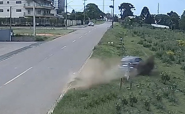 VÍDEO: Carro invade terreno em alta velocidade no bairro Imigrantes, em Carambeí