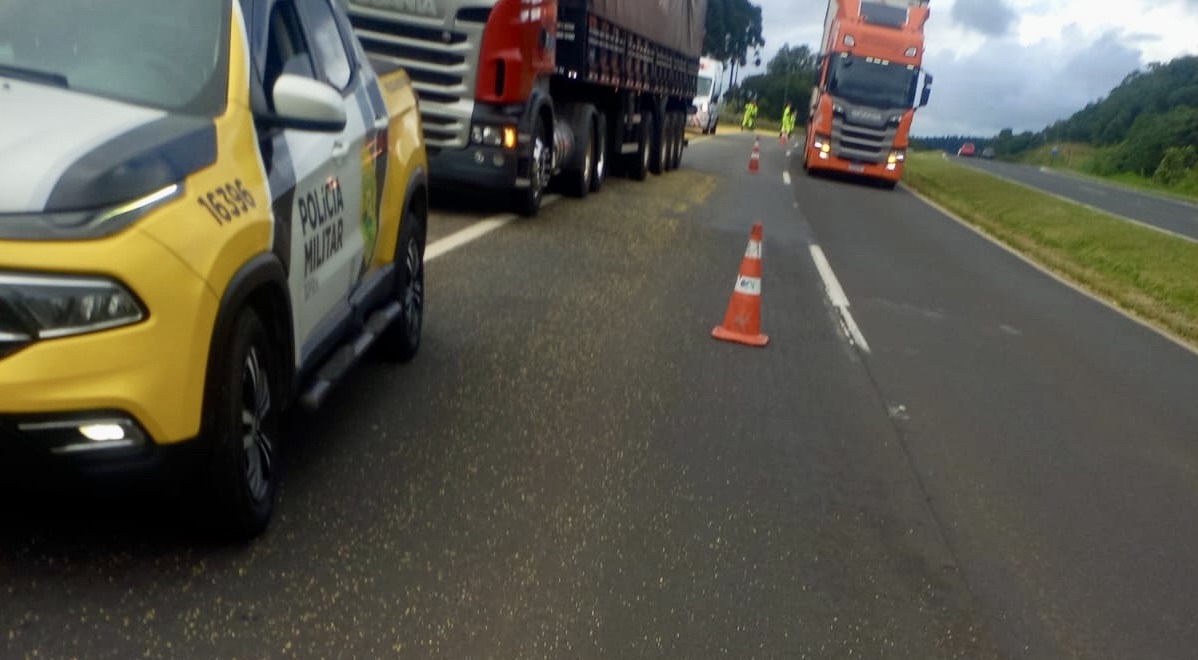 Um derramamento de carga foi registrado na tarde deste domingo (22), por volta das 16h20, na PR-151, no km 286, em Carambeí. Segundo informações apuradas no local, um caminhão Scania, com placas de Andirá, que seguia no sentido Castro–Carambeí, acabou tendo parte da carga espalhada pelo acostamento da rodovia. O veículo tracionava um semirreboque, que sofreu danos materiais. Apesar do susto, ninguém ficou ferido. O motorista, de 36 anos, não teve lesões. Após a verificação da documentação, que estava regular, o caminhão foi liberado no local. A situação exigiu atenção redobrada dos motoristas que passaram pelo trecho até a retirada da carga.