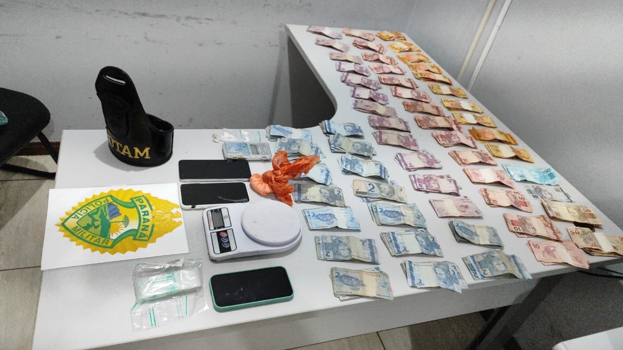 Uma ação policial realizada na sexta-feira (20) resultou na apreensão de entorpecentes, dinheiro e materiais utilizados para o comércio ilegal de drogas, além do encaminhamento de suspeitos à delegacia. Durante patrulhamento pelo bairro Rio Branco, em Castro, nas proximidades da Travessa Anairio Aquiles, policiais militares da ROTAM identificaram movimentação suspeita em um endereço já citado em denúncias relacionadas ao tráfico. Na abordagem, foram localizadas porções de substâncias análogas à cocaína e crack, quantia em dinheiro, balança de precisão, aparelhos celulares e objetos comumente utilizados para fracionamento e comercialização de entorpecentes. Dois dos envolvidos eram menores de idade. O Conselho Tutelar foi acionado para acompanhar a ocorrência, porém não compareceu ao local. Os suspeitos foram encaminhados à autoridade policial para os procedimentos cabíveis. A atuação reforça o trabalho contínuo das equipes no enfrentamento ao tráfico de drogas e na preservação da segurança da comunidade.