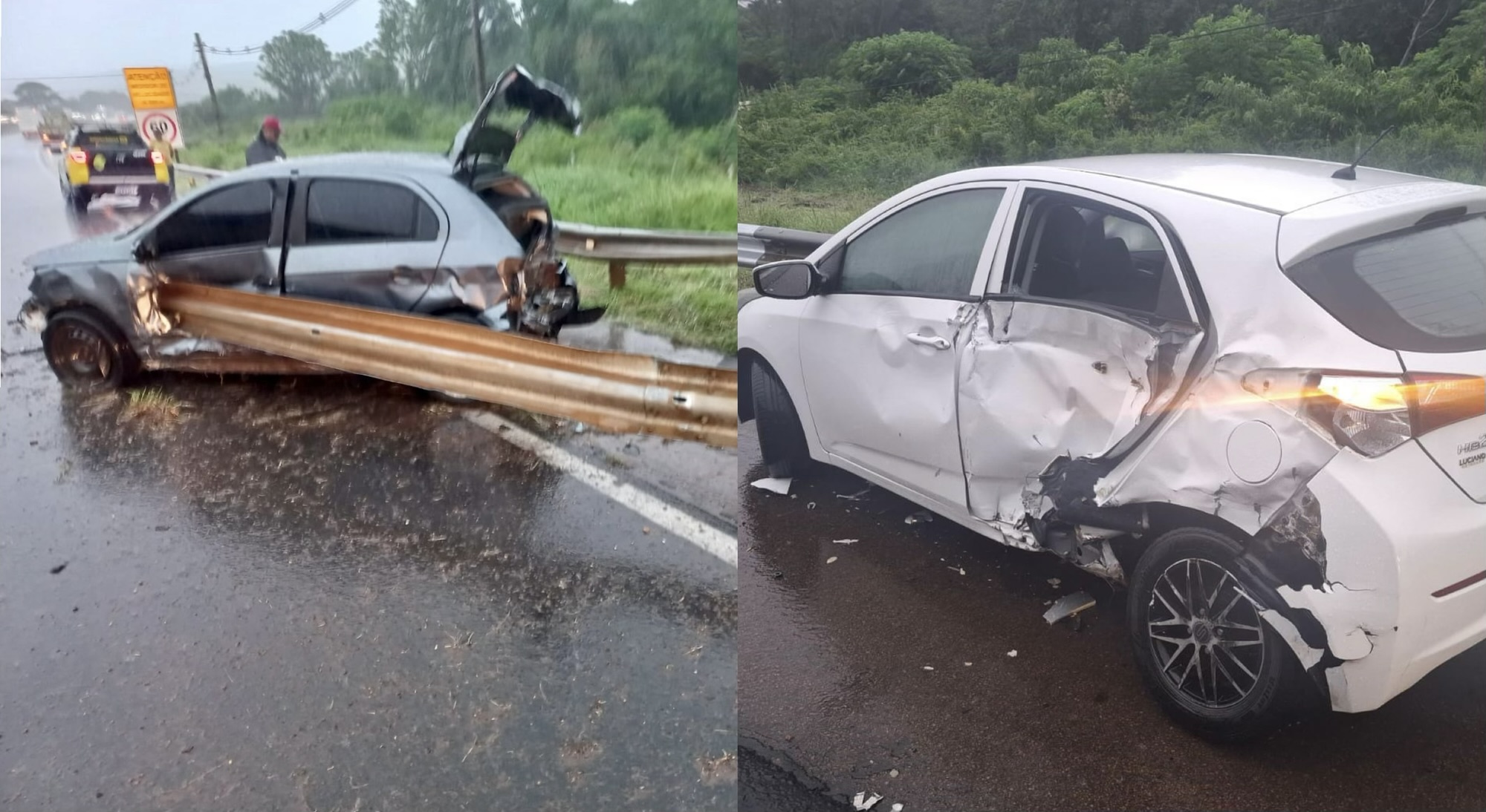 Um acidente de trânsito foi registrado na tarde desta sexta-feira (20), por volta das 16h10, na PR-151, entre Carambeí e Ponta Grossa, nas proximidades do viaduto de acesso às chamadas “curvas”. De acordo com as informações levantadas no local, um VW Gol, com placas de Ponta Grossa, seguia pela rodovia quando, ao atingir o km 164, o condutor perdeu o controle da direção e acabou colidindo contra a defensa metálica às margens da pista. No momento do ocorrido, chovia na região, o que pode ter contribuído para a perda de controle do veículo. Diante do ocorrido, o motorista de um HB20 tentou parar para prestar socorro, momento em que foi atingido por um caminhão que trafegava pela via. Felizmente, apesar da violência da colisão, houve apenas danos materiais, e nenhum dos envolvidos sofreu ferimentos. Equipes da Polícia Rodoviária Estadual estiveram no local para atendimento da ocorrência e sinalização, garantindo a segurança dos demais usuários da rodovia durante os trabalhos.