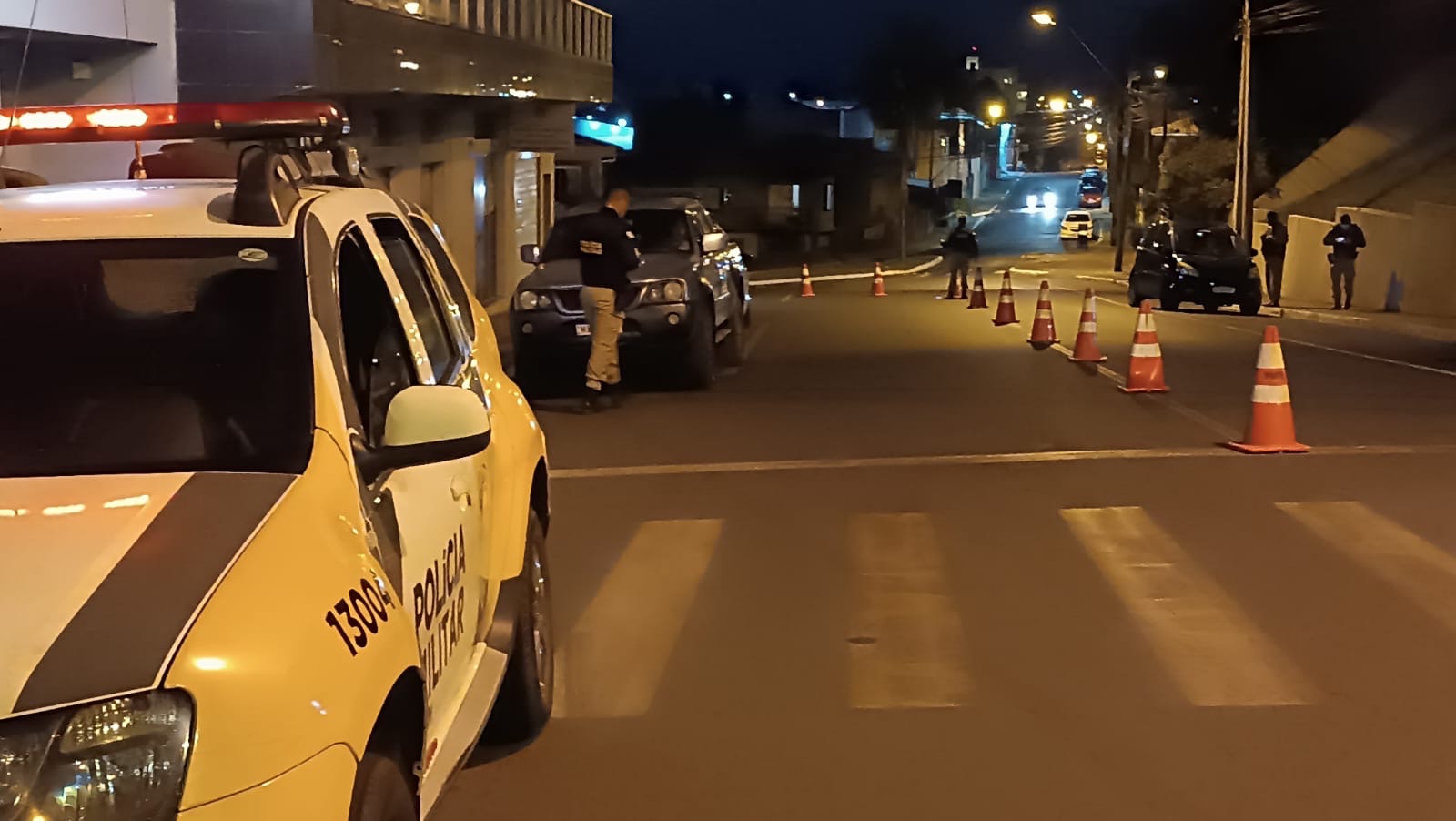 Na noite de sábado (27), o 1º Batalhão de Polícia Militar promoveu mais uma edição da Operação Cidade Segura, com o objetivo de reforçar a segurança e prevenir a criminalidade nos municípios de Piraí do Sul e Castro. As equipes realizaram abordagens em diversos pontos estratégicos das cidades, fiscalizando tanto veículos quanto estabelecimentos comerciais. Ao todo, 41 pessoas foram abordadas, 48 veículos vistoriados e 13 autos de infração de trânsito emitidos. Durante a operação, uma pessoa foi detida pelos crimes de dano e ameaça. Segundo a PM, iniciativas como essa buscam ampliar a sensação de segurança da comunidade, além de aproximar o trabalho policial da população, fortalecendo a ordem pública.