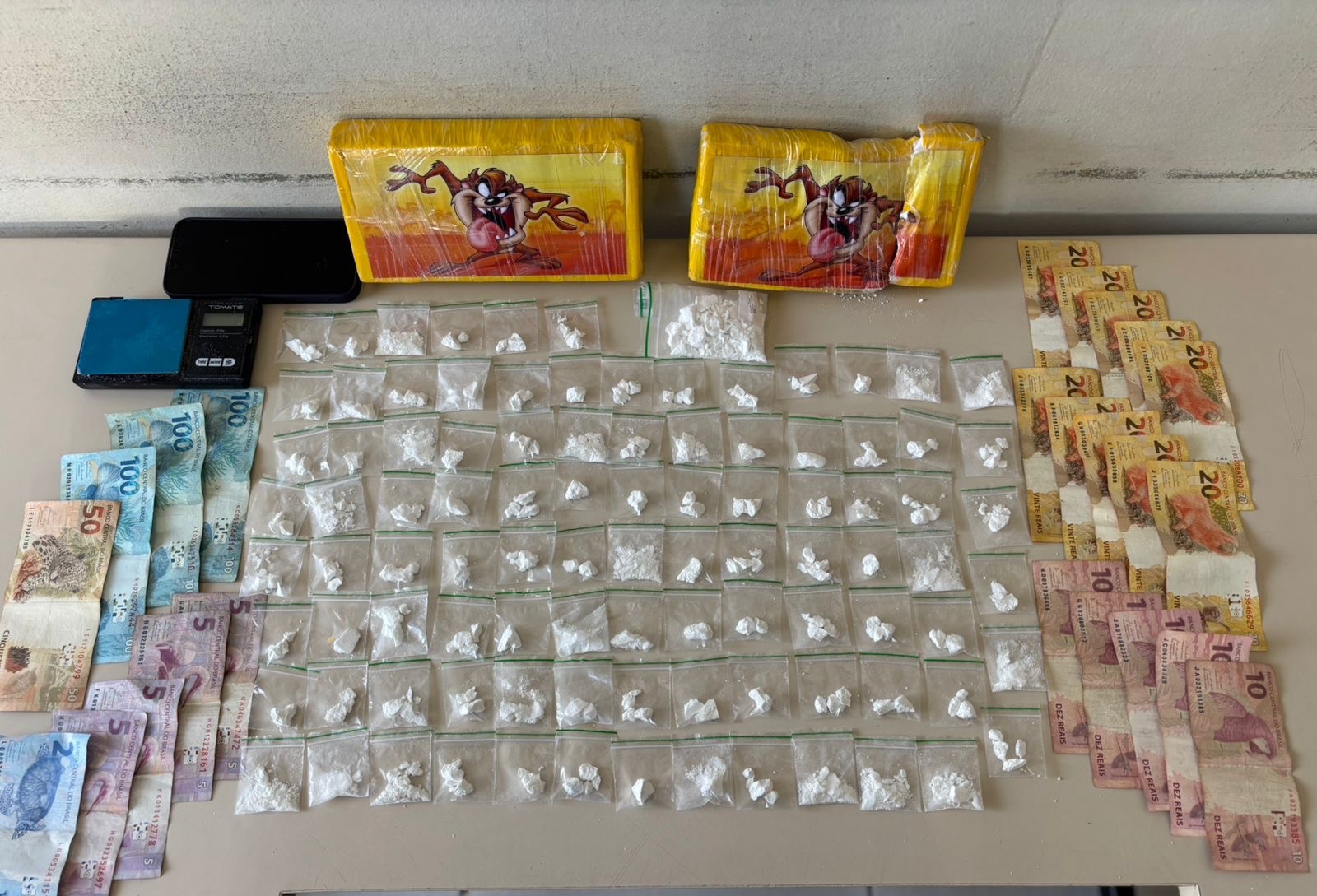 Na noite deste sábado (27), policiais do Pelotão de Choque do 1º Batalhão de Polícia Militar prenderam duas pessoas por tráfico de drogas no bairro Boa Vista, em Ponta Grossa. A equipe se deslocou até a Rua Antônio Saad após denúncia de comercialização de entorpecentes. No local, foi abordado um homem de 26 anos e, no interior da residência, os policiais flagraram uma mulher de 23 anos preparando drogas sobre uma mesa. Durante a busca, foram apreendidos 1.809 gramas de cocaína, uma balança de precisão, dinheiro em espécie e um aparelho celular. O casal e todo o material apreendido foram encaminhados à 13ª Subdivisão Policial de Ponta Grossa para as providências legais.