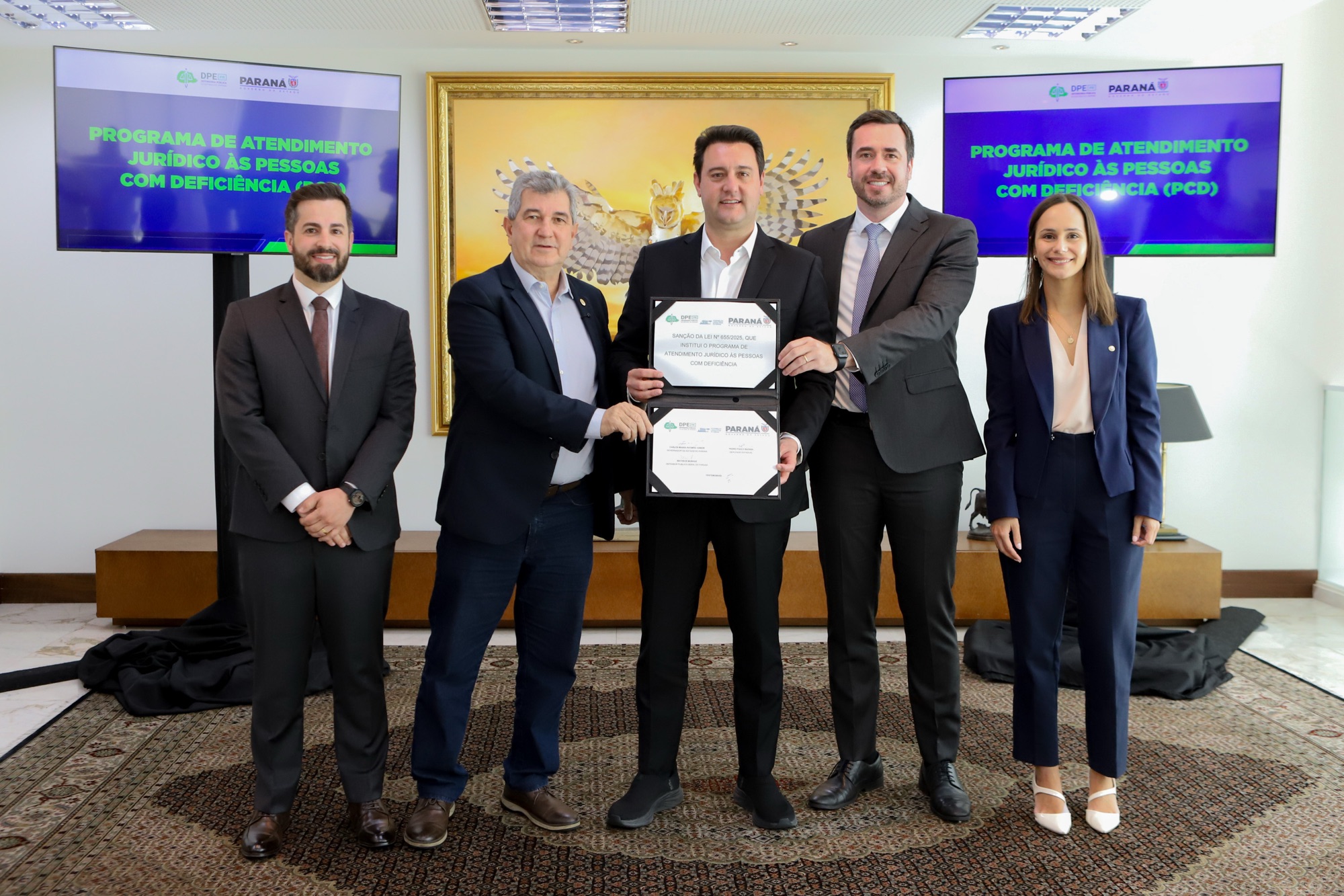 O governador Carlos Massa Ratinho Junior sancionou nesta quarta-feira (17) uma nova lei estadual que estabelece atendimento gratuito da Defensoria Pública do Estado do Paraná (DPE-PR) a Pessoas com Deficiência (PcD). A medida tem como objetivo ampliar o acesso desse público às políticas públicas e combater violações de direitos, com prestação dos serviços nos 399 municípios paranaenses, independentemente da renda dos solicitantes, desde que a demanda esteja relacionada à deficiência do cidadão. “Com muita alegria sancionamos essa lei que garante atendimento jurídico gratuito às pessoas com deficiência. É uma medida que demonstra o olhar do nosso governo para esse público, oferecendo amparo e assessoria em causas que antes exigiriam a contratação de um advogado”, afirmou Ratinho Junior O governador também ressaltou o caráter social e a ampla abrangência da medida. “Esse atendimento estará disponível em todo o Paraná, inclusive com integração às unidades do Poupatempo. A ideia é estar cada vez mais próximo das pessoas, seja por meio da tecnologia, com acesso pelo celular, seja em espaços físicos preparados para garantir esse suporte”, completou. O serviço é voltado para qualquer questão jurídica relacionada às PcDs, desde demandas sobre o acesso a políticas públicas até situações que configurem barreiras de participação plena na sociedade, como questões de saúde, educação, assistência social, previdência e trabalho. Também estão previstas ações em áreas como acessibilidade, cultura, lazer e esporte. Um dos diferenciais da legislação é que as demandas individuais ligadas à condição de deficiência ficam dispensadas de avaliação socioeconômica, etapa normalmente exigida para o acesso à Defensoria Pública. A medida coloca o Paraná em sintonia com a Convenção Internacional sobre os Direitos das Pessoas com Deficiência, a Lei Brasileira de Inclusão e o Estatuto da Pessoa com Deficiência do Estado. A DPE-PR trabalha para lançar o serviço até o fim de outubro, após a conclusão do processo de estruturação da equipe interna que atuará no atendimento ao público-alvo. O assessoramento poderá envolver tanto a busca pela resolução de questões judiciais quanto extrajudiciais. Segundo o defensor público-geral do Paraná, Matheus Cavalcanti Munhoz, ainda que Defensoria não esteja fisicamente presente em todos os municípios, o serviço será ofertado em todo o Estado, de forma 100% gratuita. “Estamos estruturando uma equipe especializada e adaptando nossas plataformas digitais para garantir um atendimento inclusivo e acessível”, explicou. Ele destacou que a medida abrange todas as situações relacionadas à deficiência. “Seja em casos de saúde, educação, mercado de trabalho, acessibilidade ou até de preconceito e capacitismo, a Defensoria estará preparada para atuar. O objetivo é assegurar que mais de 700 mil paranaenses com deficiência tenham acesso amplo e desburocratizado à Justiça e aos seus direitos”, concluiu Munhoz. A primeira subdefensora Pública-Geral, Lívia Martins Salomão Brodbeck e Silva, também participou da assinatura. O deputado estadual Pedro Paulo Bazana, que representou a Assembleia Legislativa na sanção do projeto, destacou o caráter pioneiro da iniciativa. “É uma conquista histórica, que coloca o Paraná como referência no Brasil. Mais de 700 mil pessoas com deficiência e suas famílias terão acesso gratuito à assessoria jurídica, garantindo direitos e oportunidades. Quando o Estado acolhe a PcD, toda a família é beneficiada”, declarou. ESTRUTURAÇÃO – Para garantir a execução da lei, a Defensoria Pública organizará uma estrutura específica subordinada ao Núcleo da Pessoa com Deficiência (Nuped). O texto sancionado prevê a criação de 10 novos cargos. As despesas decorrentes da lei correrão por conta de dotações orçamentárias da própria Defensoria. Também está autorizada a celebração de convênios, parcerias e acordos de cooperação técnica com órgãos públicos, instituições de ensino e entidades da sociedade civil, tanto para aprimorar o atendimento quanto para promover ações de capacitação e educação em direitos. O Nuped também atuará de forma coletiva, o que significa que, além do serviço para cada pessoa que acionar a Defensoria Pública, também poderá representar grupos ou todo o recorte populacional, inclusive com contribuições para a formulação e o aprimoramento de políticas públicas voltadas às PcD. De acordo com o defensor público Luis Gustavo Purgatto, que coordena o Nuped, a nova lei inaugura um ciclo inédito de acesso à Justiça no Paraná. “Estamos há dois anos estruturando o projeto e capacitando servidores, que está sendo concluído agora com a seleção e o treinamento da equipe para oferecer um atendimento acessível, inclusivo e tecnológico. Com isso, garantimos que todos possam exercer plenamente seus direitos, por meio de uma multiplicidade de canais de atendimento”, disse. ATENDIMENTO – O atendimento será prioritariamente remoto, por meio da plataforma Luna, que já dispõe de recursos de acessibilidade. Também haverá opções via telefone, e-mail ou presencialmente nas 30 sedes da Defensoria Pública no Estado. Quando não for possível garantir o atendimento integral de forma digital, será assegurado o suporte presencial na unidade mais próxima ao domicílio do solicitante. De acordo com dados do Instituto Brasileiro de Geografia e Estatística (IBGE), divulgados em maio a partir dos resultados preliminares do Censo 2022, 7,3% da população brasileira com 2 anos ou mais, ou seja, cerca de 14,4 milhões de pessoas, têm algum tipo de deficiência. No Paraná, esse grupo representa aproximadamente 6,4% da população, o equivalente a 732 mil pessoas.