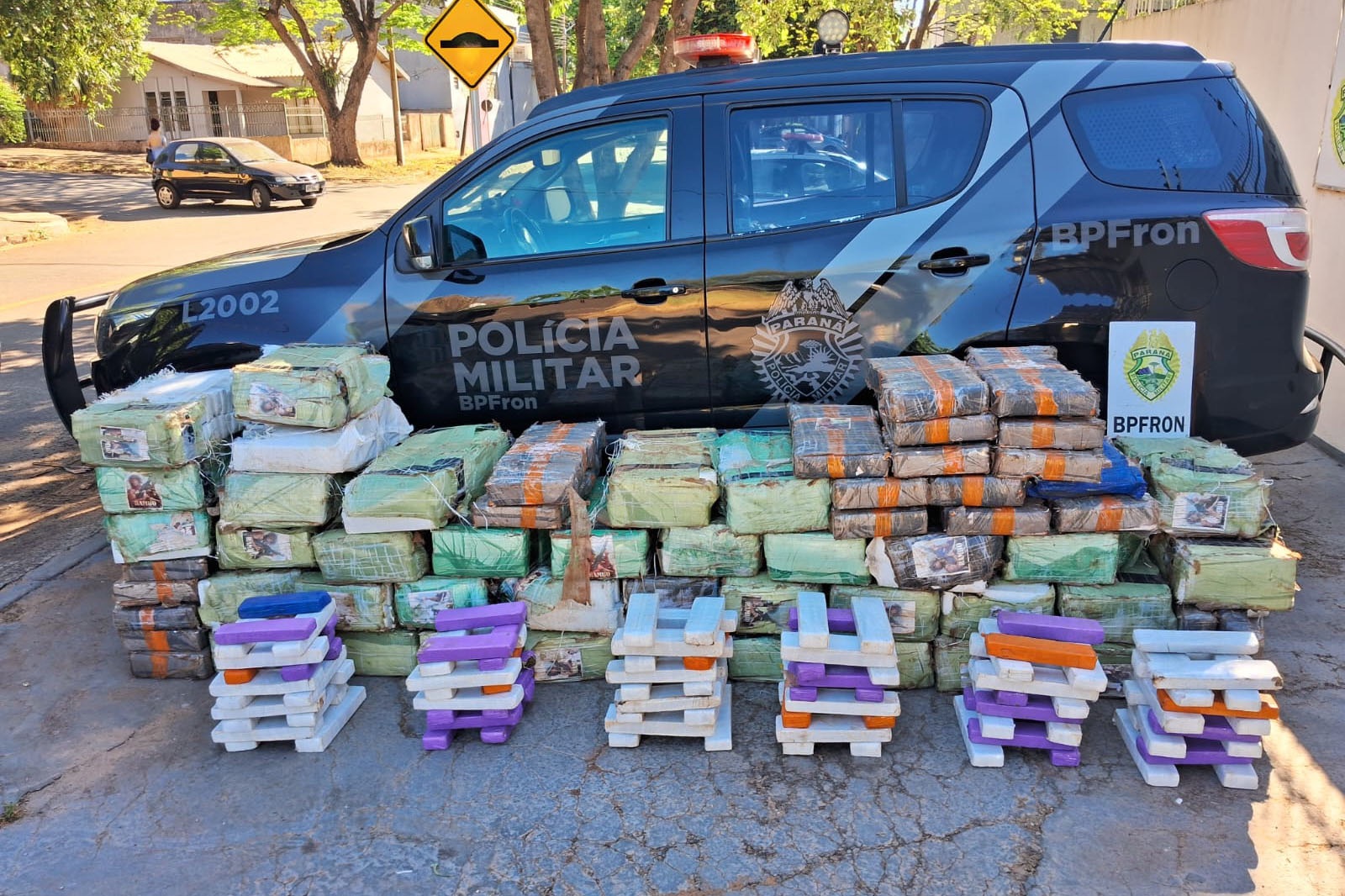 A Polícia Militar do Paraná (PMPR) apreendeu 1 tonelada de maconha e causou um prejuízo de R$ 2.074.000,00 ao crime organizado. A apreensão aconteceu na tarde de quarta-feira (10) em Tapira, na Região Noroeste, durante a Operação Protetor de Divisas e Fronteiras. Coordenada pelo Ministério da Justiça e Segurança Pública, a Operação Protetor das Divisas e Fronteira está inserida no Programa Nacional de Enfrentamento das Organizações Criminosas (ENFOC) e tem o objetivo de desarticular grupos criminosos e reduzir a circulação de drogas, principalmente em rota de contrabando de mercadorias ilícitas nas regiões de fronteiras. “Esta apreensão de uma tonelada de maconha, que poderia abastecer o tráfico em diversas cidades, é um reflexo do trabalho incansável de nossas equipes. Mais uma vez, é possível notar que as forças de segurança do Paraná trabalham para enfraquecer o crime organizado e garantir a segurança de nossa população”, afirmou o secretário da Segurança Pública do Paraná, Hudson Leoncio Teixeira. Uma equipe do batalhão realizava patrulhamento na rodovia PR-082, perto de Tapira, quando notou um carro, Fiat/Strada, de cor cinza, em alta velocidade e fazendo ultrapassagens perigosas. Os policiais deram a ordem de parada, mas o motorista não obedeceu e fugiu. Após ser perseguido por aproximadamente 15 quilômetros, o suspeito arremessou o carro contra um monte de terra na entrada de Tapira e fugiu a pé, não sendo localizado. Durante a busca no veículo, a polícia encontrou a droga na carroceria e na parte interna do carro. O total de maconha apreendida foi de 1 tonelada. O veículo e a droga foram levados para Delegacia de Polícia Civil (PCPR) de Cidade Gaúcha. Para o comandante-geral da PMPR, coronel Jefferson Silva, a operação é uma demonstração da efetividade das ações de fronteira no combate ao tráfico e da capacidade de resposta da corporação para atuar de forma integrada e estratégica. “Recentemente, inauguramos uma base estratégica do BPFron em Cascavel. Isso reforça a missão do Paraná com seu cidadão, promovendo a segurança pública e sufocando financeiramente o crime organizado, garantindo maior segurança à sociedade paranaense”, finalizou.
