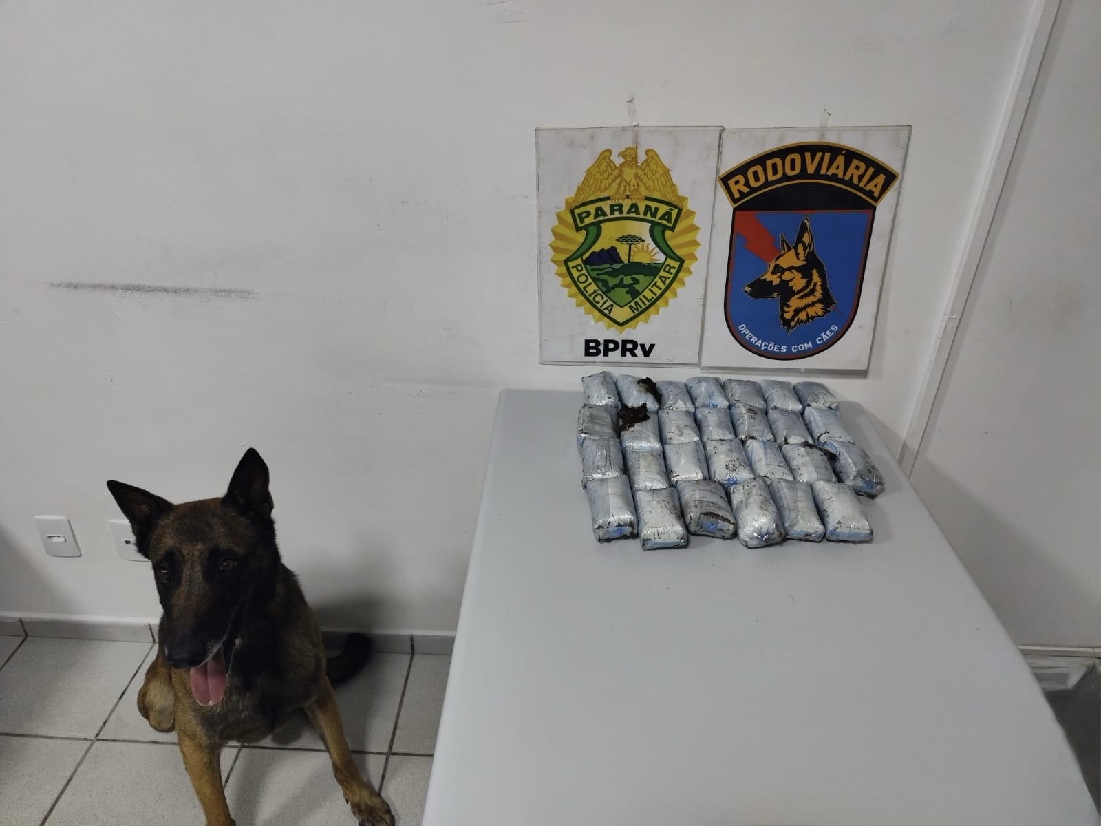 Na noite de sexta-feira (5), por volta das 23h50, a Polícia Militar Rodoviária, em operação com a equipe de Operações com Cães, prendeu uma mulher de 35 anos pelo crime de tráfico de drogas em Piraí do Sul, na região dos Campos Gerais. A ação ocorreu no km 265 da PR-151, durante a fiscalização de um ônibus que fazia o itinerário Foz do Iguaçu (PR) – Rio de Janeiro (RJ). O cão farejador Máximus foi empregado na vistoria ao bagageiro traseiro e indicou positivamente uma mala de cor preta. Na revista, os policiais encontraram, escondidos em meio a um cobertor, diversos invólucros de haxixe, totalizando 5,611 kg. A responsável pela bagagem foi identificada por meio do cupom de embarque. Segundo a própria suspeita, ela receberia R$ 2 mil para transportar a droga até São Paulo. A mulher recebeu voz de prisão em flagrante e foi encaminhada à Delegacia de Polícia Civil de Castro, junto com os entorpecentes e demais materiais apreendidos.
