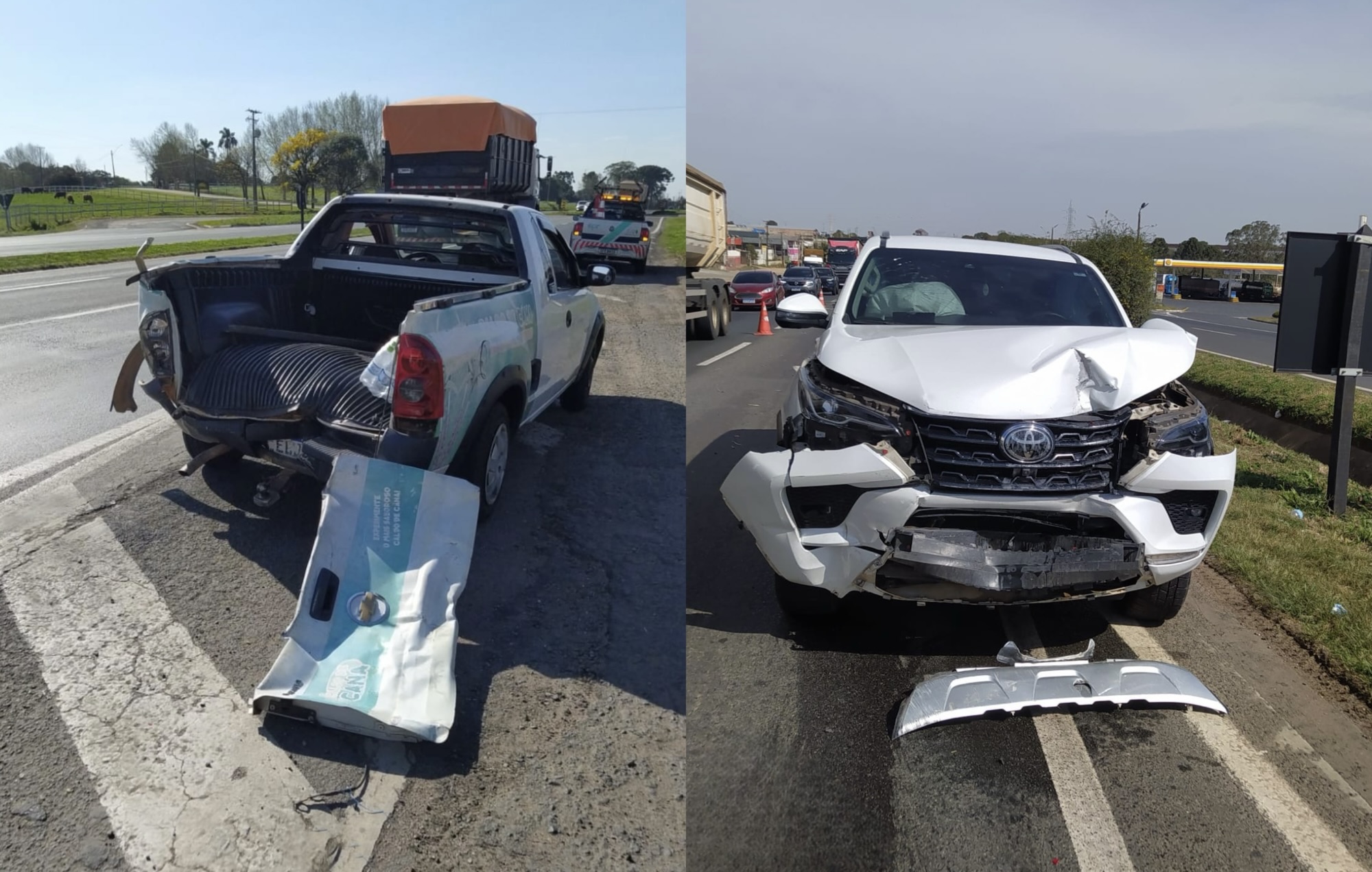 Na noite da última sexta-feira (22), por volta das 22h05, a Polícia Rodoviária Estadual (PRE) atendeu a um acidente de trânsito na PR-151, km 262, em Piraí do Sul. O sinistro envolveu uma Fiat Strada, de São Paulo (SP), conduzida por A.F.A.P., de 28 anos, que sofreu ferimentos leves, e uma carreta Scania R113, acompanhada de um semirreboque Rodolinea, ambos com placas de Ponta Grossa (PR), conduzidos por L.M., de 60 anos, que não se feriu. Segundo informações repassadas pela PRE, a colisão traseira ocorreu quando os veículos trafegavam pelo mesmo sentido da rodovia. O condutor da Strada foi socorrido por terceiros e encaminhado ao Hospital Santo Antônio de Piraí do Sul. Os veículos sofreram danos materiais, mas foram liberados no local.