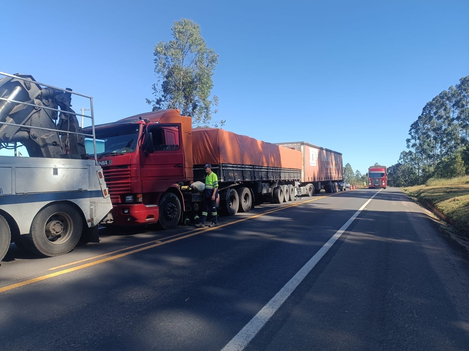 Um engavetamento envolvendo cinco veículos foi registrado no final da manhã desta terça-feira (8) na PR-151, no quilômetro 192+500 metros, no trecho entre os municípios de Jaguariaíva e Sengés, região dos Campos Gerais do Paraná. A ocorrência foi atendida pela Polícia Rodoviária Estadual. De acordo com o boletim, o acidente ocorreu por volta das 11h30, quando um caminhão Scania 142, com placas de Arapoti, acoplado a um semirreboque da marca Randon, apresentou problemas mecânicos e parou na pista. Os veículos que trafegavam no mesmo sentido — um caminhão Mercedes-Benz Axor 2041, um semirreboque Rodofort SSR, ambos com placas do estado de São Paulo, e um automóvel Volkswagen Santana, de Araucária (PR) — acabaram colidindo na sequência, provocando um engavetamento. O único ferido foi o condutor do Santana, um homem de 45 anos, que sofreu ferimentos leves e foi atendido no local. Os demais motoristas não se feriram. O acidente causou danos nos veículos envolvidos, especialmente no automóvel e nos semirreboques, e mobilizou equipes policiais entre as 12h45 e 14h05, período em que o tráfego no trecho foi parcialmente comprometido. A Polícia Rodoviária Estadual orienta os motoristas sobre a importância da manutenção preventiva, especialmente em veículos de carga, para evitar situações semelhantes nas rodovias.