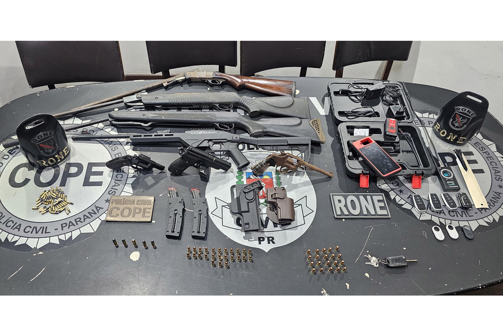 A Polícia Civil do Paraná (PCPR) e a Polícia Militar do Paraná (PMPR) prenderam na noite desta segunda-feira (7) dois homens suspeitos de envolvimento na tentativa de roubo a uma agência bancária em Bocaiúva do Sul, na Região Metropolitana de Curitiba. A ação faz parte de um cerco policial iniciado logo após o crime, com atuação integrada das forças de segurança. As prisões ocorreram durante operação conjunta do Centro de Operações Policiais Especiais (Cope), unidade de elite da PCPR, e da Rondas Ostensivas de Natureza Especial (Rone), tropa especializada da PMPR. A tentativa de roubo ocorreu na madrugada de domingo (6). Quatro indivíduos armados com fuzis tentaram violar o cofre principal da agência. O crime foi frustrado, mas deixou danos estruturais no prédio. O local precisou ser isolado e vistoriado por equipes especializadas, incluindo o Corpo de Bombeiros e a Defesa Civil. As equipes localizaram uma chácara na área rural do município que estaria sendo usada como base pelo grupo criminoso. No local, foram apreendidas armas de fogo e uma caminhonete com placas adulteradas, que teria sido utilizada na tentativa de roubo. O secretário da Segurança Pública, Hudson Leôncio Teixeira, destacou a importância da ação coordenada entre as forças policiais. “É resultado de uma estratégia firme de enfrentamento ao crime organizado. Essa integração entre Polícia Civil e Polícia Militar, com ações rápidas e bem coordenadas, é o que garante resposta efetiva e segurança para a população”, afirmou. O material apreendido e os dois presos foram levados à sede do Cope, que segue com as diligências para identificar os demais integrantes da quadrilha. A investigação apura ainda a possível participação do grupo em outras ações criminosas no Estado. O tenente-coronel João Roberto Alves, comandante da Rone, enfatizou a integração das forças no enfrentamento à criminalidade violenta. “A pronta resposta da Rone, em parceria com o Cope, foi decisiva para localizar os suspeitos e interromper a atuação do grupo. Quando se trata de proteger a população e enfrentar criminosos armados, a atuação conjunta entre as forças policiais é o que garante resultado. Essa operação mostra que o Paraná não tolera esse tipo de crime”, afirmou. O delegado-adjunto do Cope, Osmar Feijó, ressaltou o avanço nas investigações. “As prisões representam um passo importante para desarticular o grupo responsável pela tentativa de roubo. Seguimos com diligências para identificar todos os envolvidos e reunir provas que sustentem a responsabilização penal dos autores”, disse. As investigações continuam. A expectativa das equipes é identificar todos os envolvidos na tentativa de roubo e reunir elementos que ajudem a esclarecer a atuação do grupo, que agiu com armamento pesado e planejamento típico de organizações criminosas.