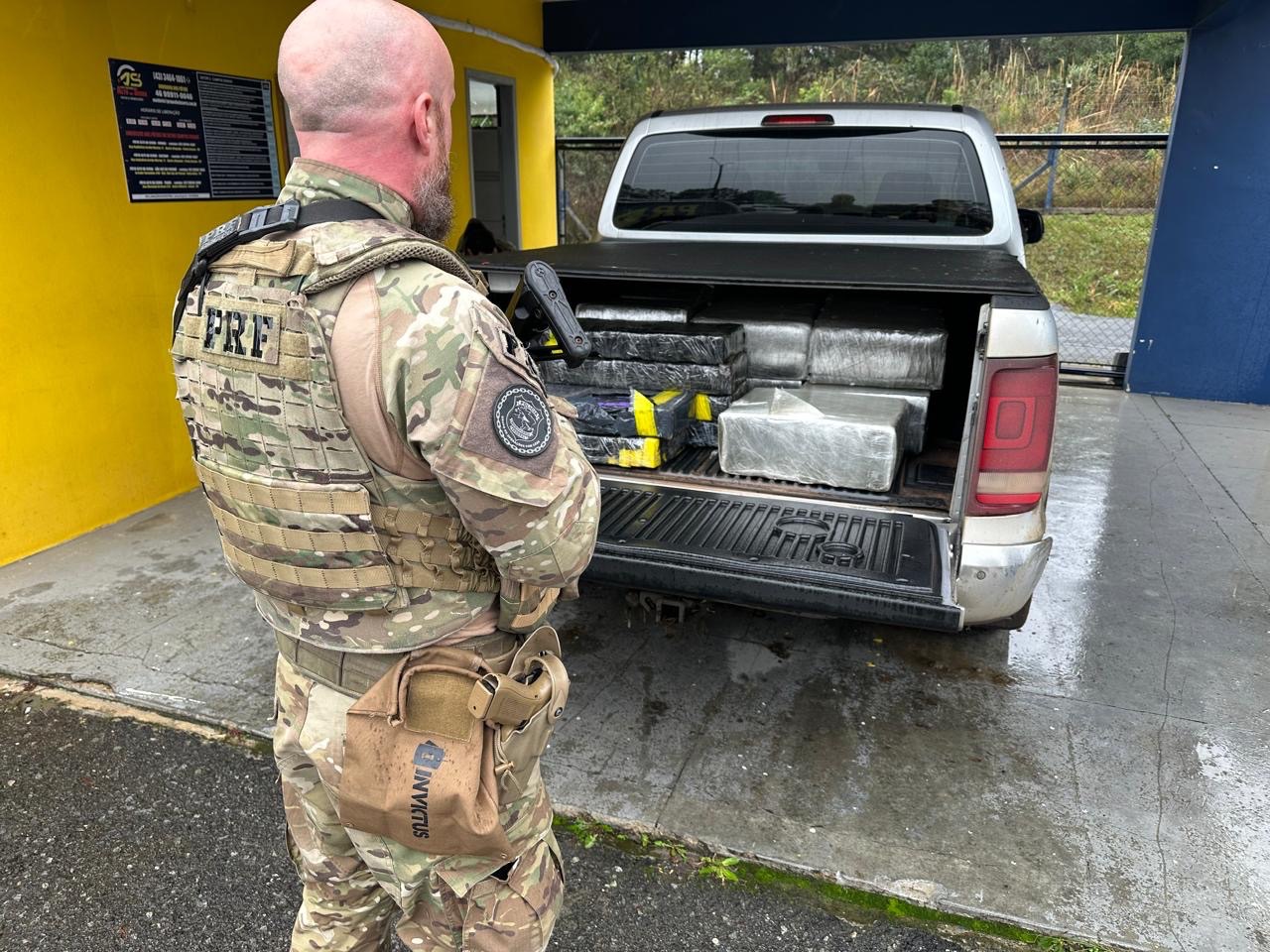 PRF apreende 355 kg de maconha, em caminhonete clonada, após perseguição na região