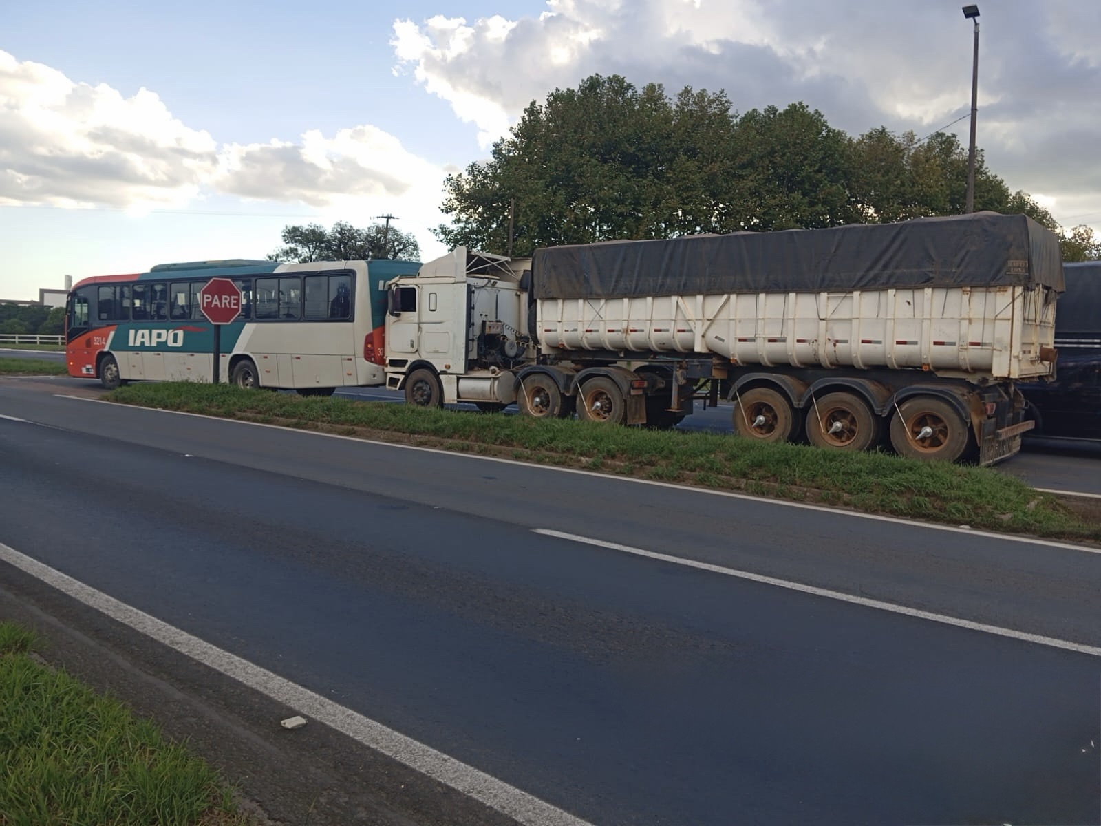 Colisão lateral envolve caminhões na PR-151, em Carambeí
