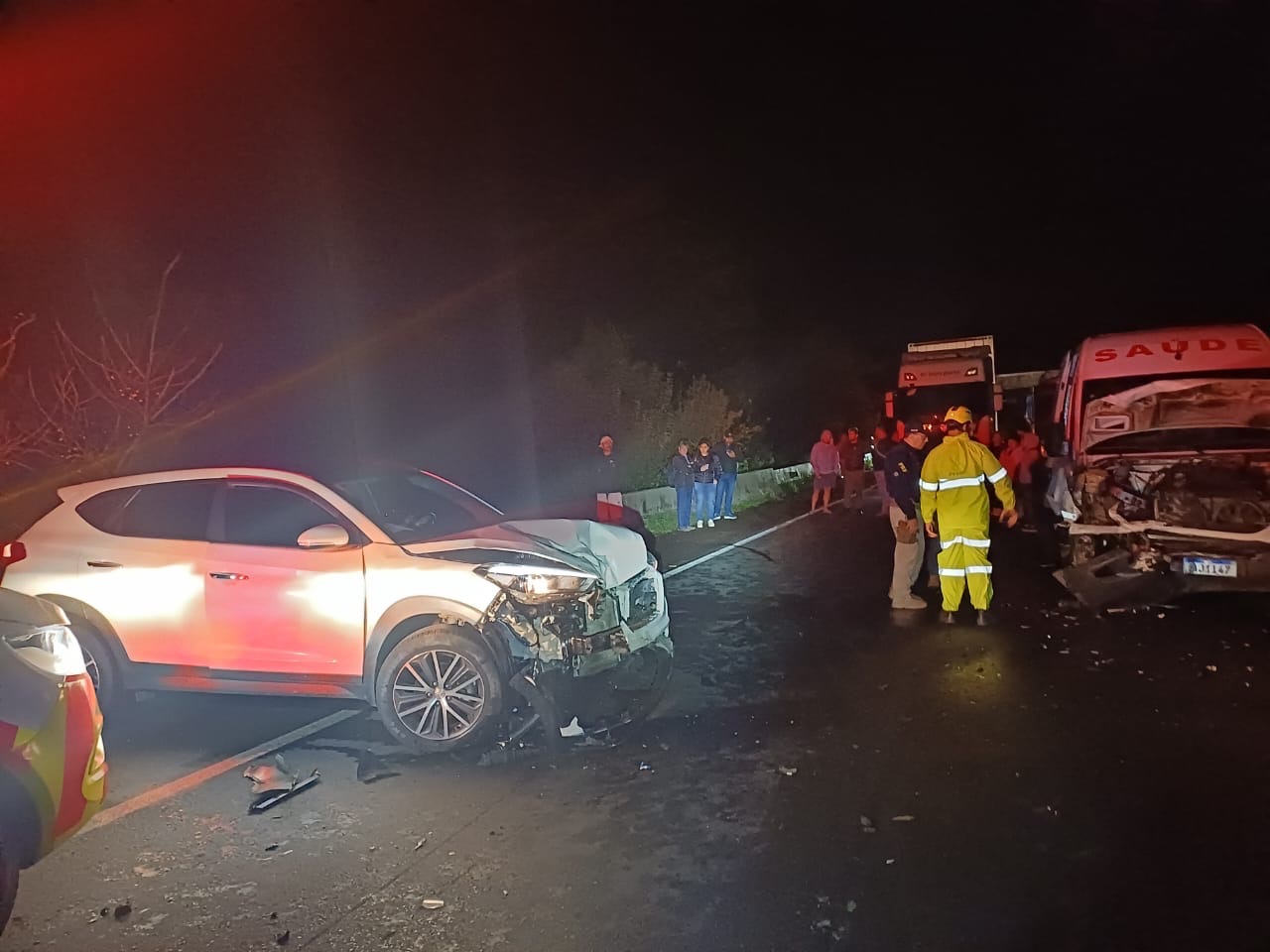 Colisão frontal entre van da saúde e carro deixa três feridos na BR-376, em Ponta Grossa