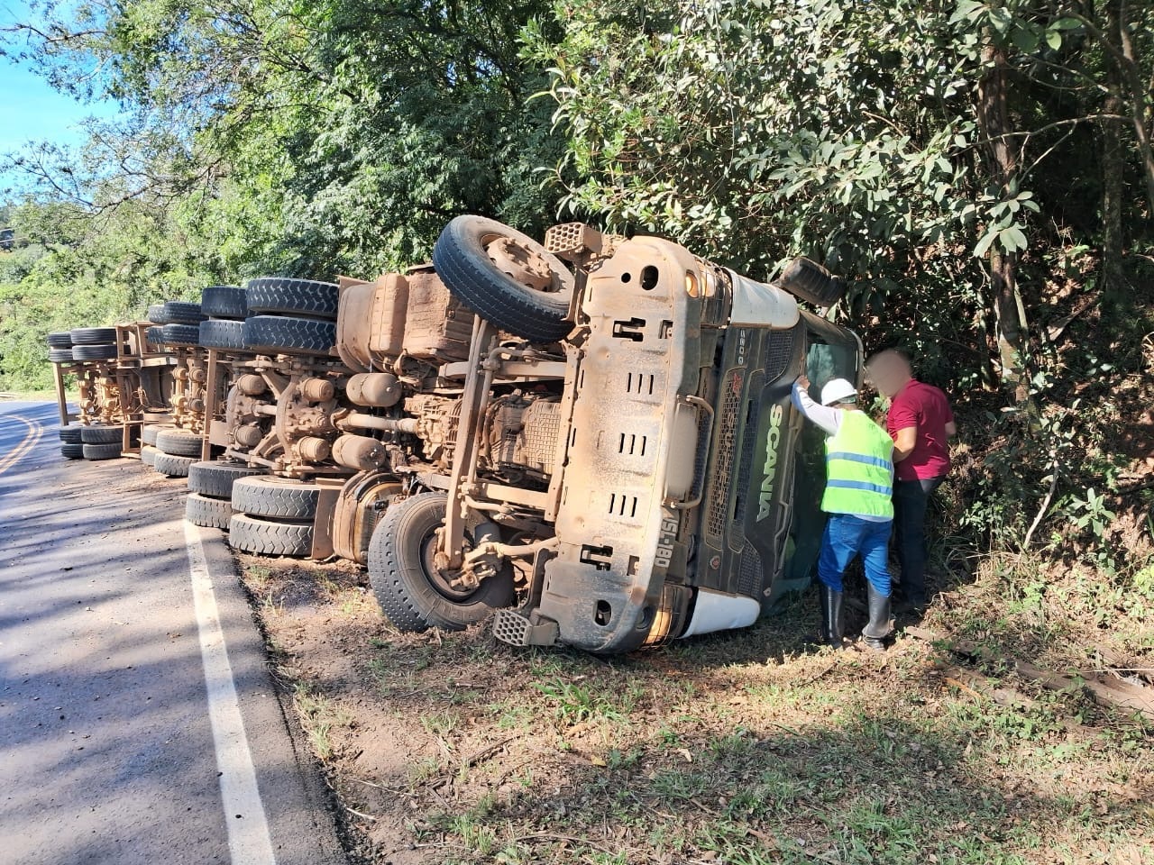 Na manhã da última quinta-feira (8), por volta das 11h30, a Polícia Militar Rodoviária (PMPR), por meio da 5ª Companhia do Batalhão de Polícia Rodoviária (BPRv), atendeu um acidente do tipo tombamento na PR-160, km 208, no trecho secundário que liga Telêmaco Borba a Curiúva. O acidente envolveu um caminhão SCANIA com placas de Belo Horizonte/MG, que tracionava dois semirreboques com placas de Telêmaco Borba. De acordo com o relatório policial, o veículo transitava carregado de madeira quando o condutor perdeu o controle da direção e acabou tombando na pista. O motorista, um homem de 36 anos identificado pelas iniciais J.F.M, sofreu ferimentos leves e foi encaminhado ao hospital para atendimento médico. O veículo teve danos consideráveis em decorrência do acidente. A PMPR realizou o atendimento no local e orientou o trânsito na rodovia durante os procedimentos. As causas do acidente ainda serão apuradas.