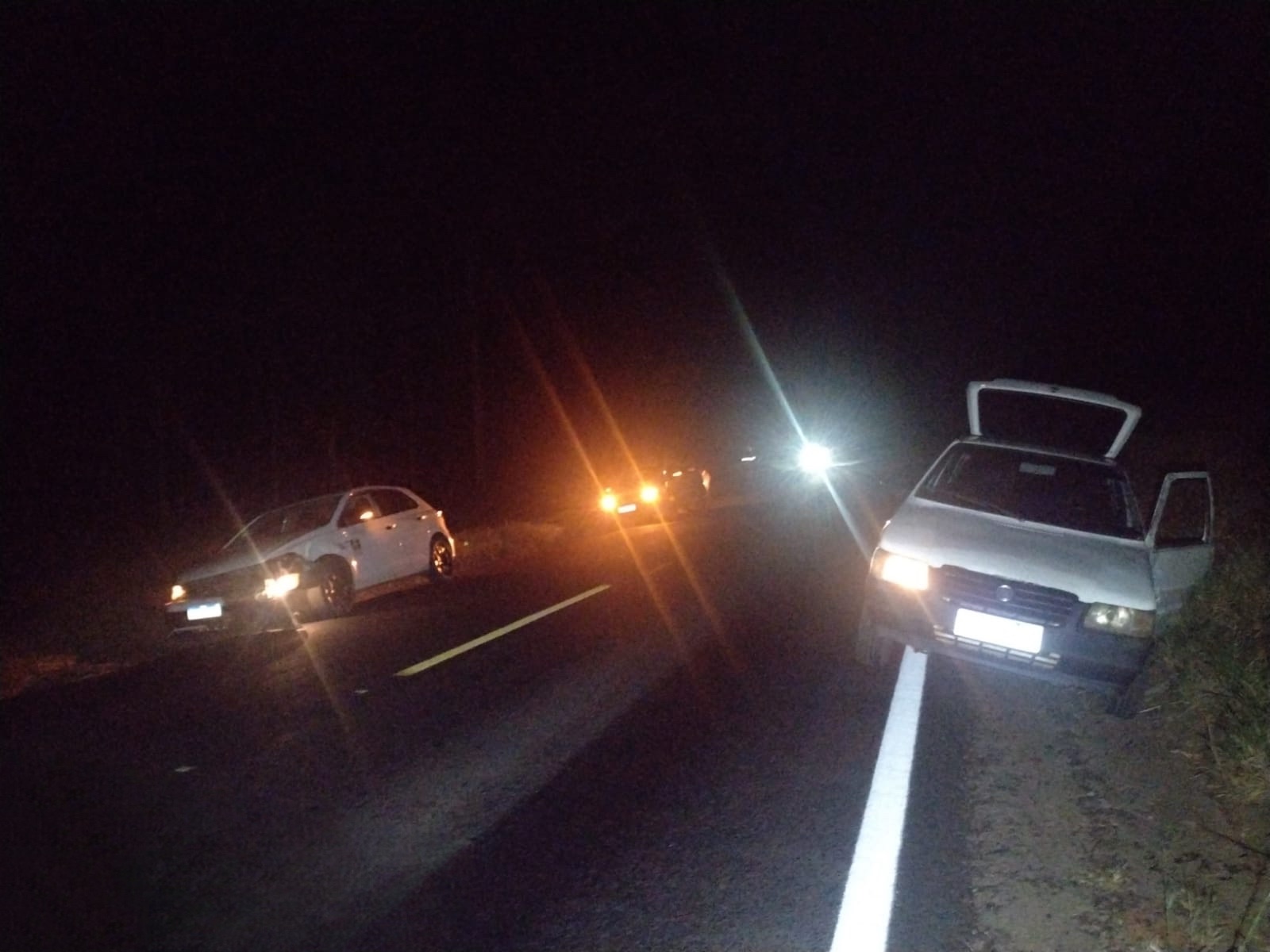 A Polícia Militar Rodoviária atendeu na noite de segunda-feira (06), por volta das 21h10, um acidente de trânsito do tipo abalroamento lateral na PR-160, no km 201+550, em Telêmaco Borba. O sinistro ocorreu no trecho que liga as localidades de Lagoa e Harmonia. Segundo informações repassadas pela 5ª Companhia do Batalhão de Polícia Rodoviária (BPRv), o acidente envolveu dois veículos que trafegavam no mesmo sentido (Lagoa–Harmonia): um VW Polo com placas de Telêmaco Borba, conduzido por J.P., de 37 anos, e um Fiat Uno com placas de Prudentópolis, dirigido por F.R., de 46 anos, natural também de Telêmaco Borba. A colisão resultou em danos materiais nos dois automóveis e ferimentos leves no condutor do Fiat Uno, que foi socorrido no local. As causas do acidente serão apuradas pelas autoridades competentes. A equipe da Polícia Rodoviária Estadual realizou o atendimento e os procedimentos de praxe no local da ocorrência.