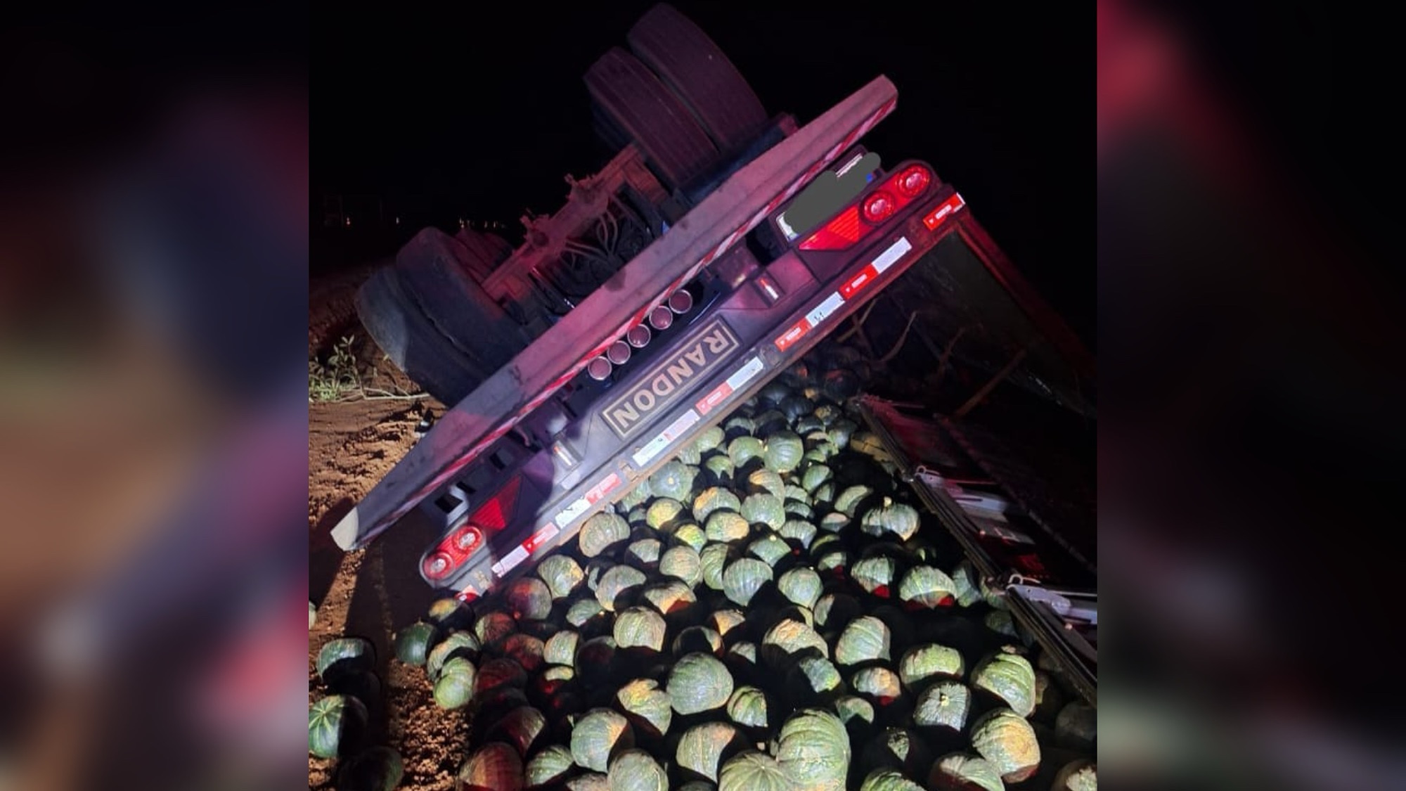 Na madrugada deste domingo (27), um grave acidente foi registrado na PR-151, no município de Palmeira, nos Campos Gerais do Paraná. O caso ocorreu por volta das 00h40, no quilômetro 363 da rodovia, sentido Palmeira a Ponta Grossa, e envolveu uma carreta Scania/R440 acoplada a um semirreboque da marca Randon. De acordo com as informações colhidas pelas equipes que atenderam a ocorrência, o veículo transitava normalmente pela rodovia quando, por motivos que ainda serão apurados, o motorista perdeu o controle da direção. A carreta saiu da pista e, na sequência, acabou capotando. O condutor, um homem de 53 anos, sofreu ferimentos leves. Ele recebeu os primeiros atendimentos no local e, apesar do susto, não corre risco de vida. Já o veículo sofreu danos materiais significativos em razão do capotamento. As circunstâncias do acidente ainda estão sendo investigadas. Não houve necessidade de interdição total da via, e o trânsito fluiu com lentidão apenas durante os trabalhos de atendimento e remoção da carreta. As autoridades reforçam a orientação para que motoristas redobrem a atenção ao trafegar pela PR-151, especialmente durante a madrugada e em trechos de pista simples.