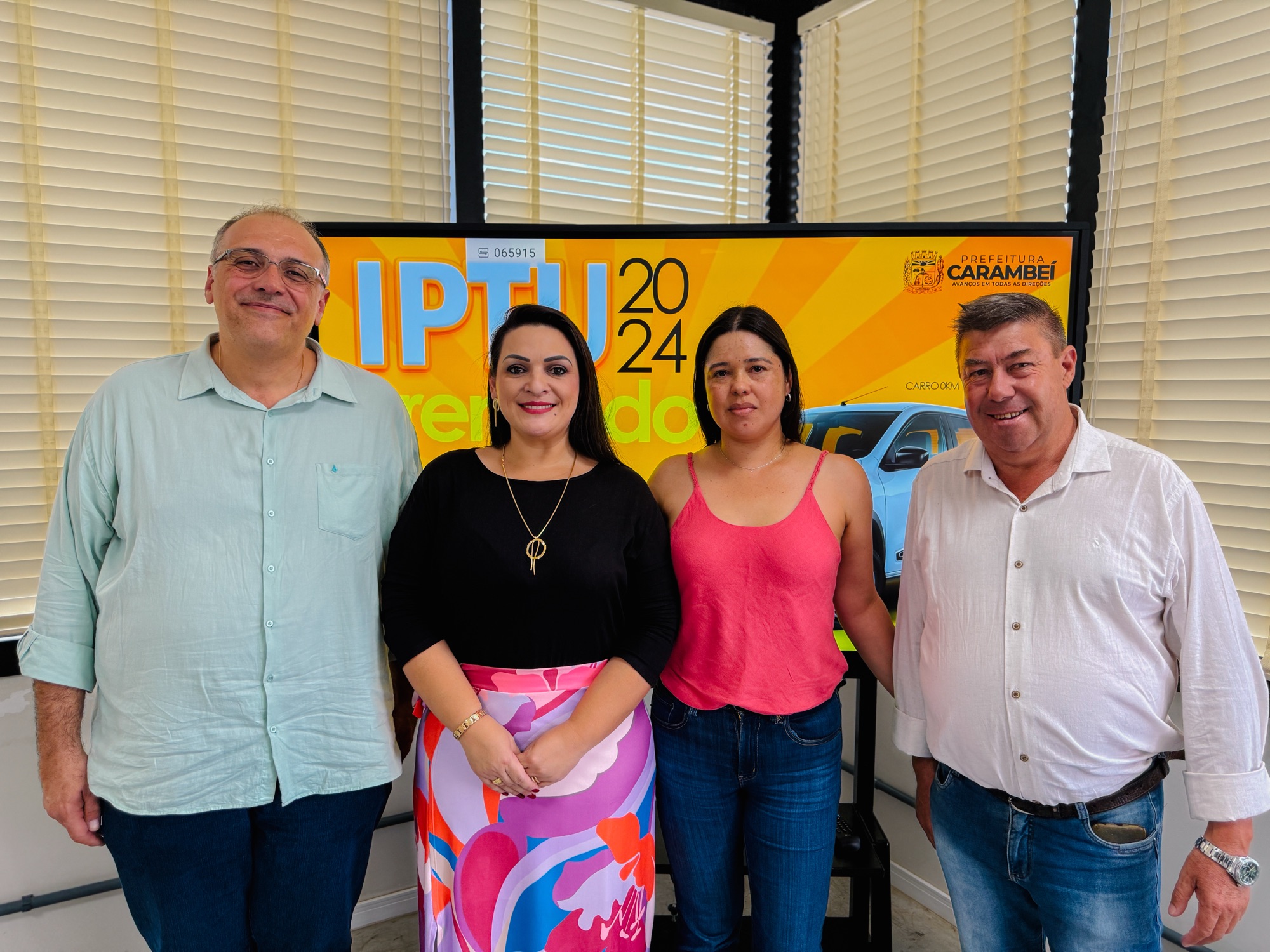 Na tarde desta sexta-feira (28), foi realizado no Paço Municipal de Carambeí o sorteio do IPTU Premiado 2024, uma iniciativa que incentiva a regularização do Imposto Predial e Territorial Urbano (IPTU) e valoriza os contribuintes adimplentes. O evento contou com transmissão ao vivo pela página oficial da Prefeitura no Facebook, garantindo transparência e credibilidade ao processo. Entre os prêmios sorteados estavam um Renault Kwid 0Km, dois notebooks e duas televisões de 50 polegadas. O grande vencedor do automóvel foi Albino Ney de Oliveira, morador do bairro Jardim Bela Vista. Os demais ganhadores foram: • Notebook: Jhoni Lendert Los (Rua do Bronze) • Notebook: Melise Renata de Oliveira (Rua Guamiranga, Bairro Cidade Nova) • TV 50”: Fazenda Frank’Anna – Flávio Ribeiro (Rua das Orquídeas) O sorteio do IPTU Premiado reforça a importância do pagamento do imposto municipal, que contribui diretamente para investimentos em infraestrutura, educação, saúde e demais serviços essenciais à população. A iniciativa também busca incentivar a participação dos contribuintes, promovendo o compromisso com o desenvolvimento da cidade. Os premiados serão contatados para a retirada dos prêmios conforme regulamento do sorteio.
