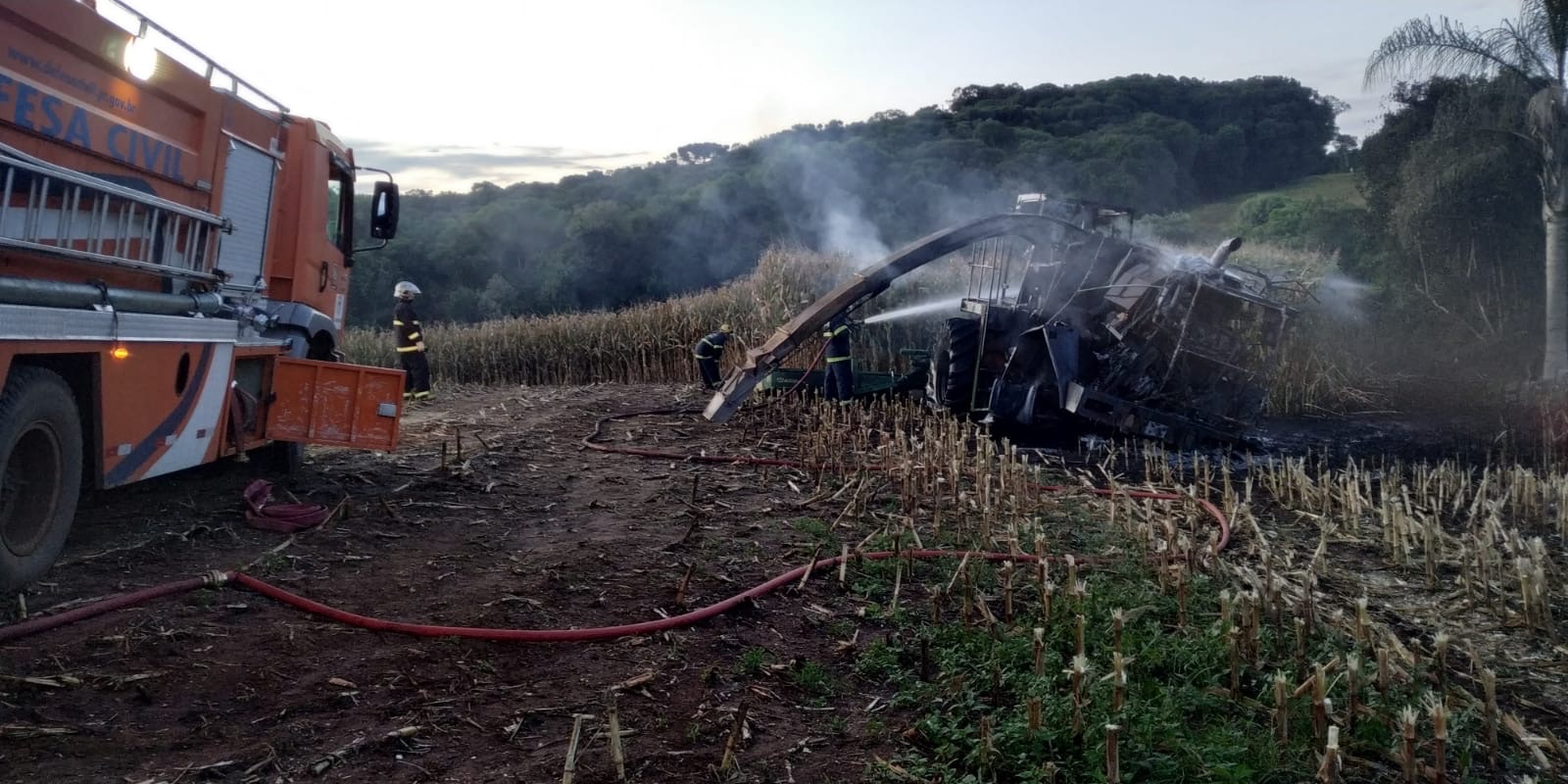 Na última segunda-feira (17), por volta das 18h, um incêndio destruiu completamente uma máquina agrícola forrageira na região da Tainha, área rural de Carambeí. Equipes da Defesa Civil foram acionadas e, ao chegarem ao local, encontraram o maquinário em chamas. Conforme apurou o portal Carambeí News, o combate ao fogo foi iniciado com o uso de água e, após a situação ser controlada, os agentes realizaram o rescaldo para eliminar possíveis focos remanescentes. O equipamento estava sendo utilizado para o corte de silagem em uma propriedade rural no momento do incidente. Ainda não há informações precisas sobre a causa do incêndio. No entanto, as altas temperaturas registradas no dia — que chegaram a 30°C — podem ter favorecido a propagação das chamas. Apesar da gravidade do ocorrido, o operador da máquina conseguiu sair ileso, sem ferimentos.