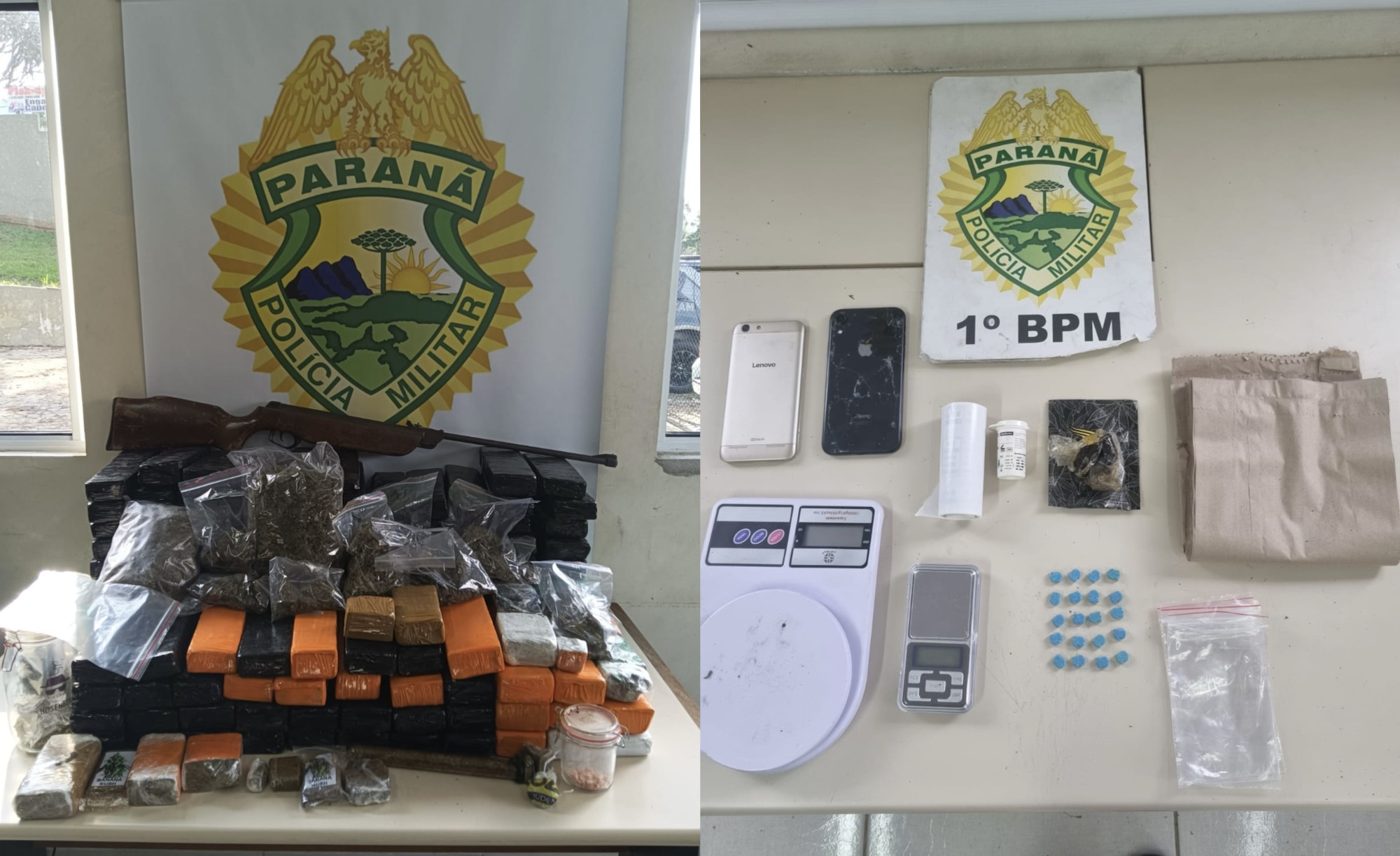 Na manhã desta quinta-feira, o 1º Batalhão de Polícia Militar, em uma operação conjunta com unidades do 4º Comando Regional, realizou uma importante ação contra o tráfico de drogas em Ponta Grossa. A operação, que cumpriu mandados de Busca e Apreensão e de Prisão, foi coordenada pelo Ministério Público do Paraná, com o suporte da Agência Local de Inteligência do 1º BPM. Como resultado da operação, dez mandados de prisão foram cumpridos, além de três prisões em flagrante. As autoridades apreenderam mais de 100 kg de maconha, 317 g de haxixe, 58 comprimidos de ecstasy e 217 unidades de LSD. Além dos entorpecentes, também foram confiscados uma carabina de pressão, balanças de precisão, celulares, materiais para venda de drogas e um veículo utilizado para a entrega de entorpecentes.