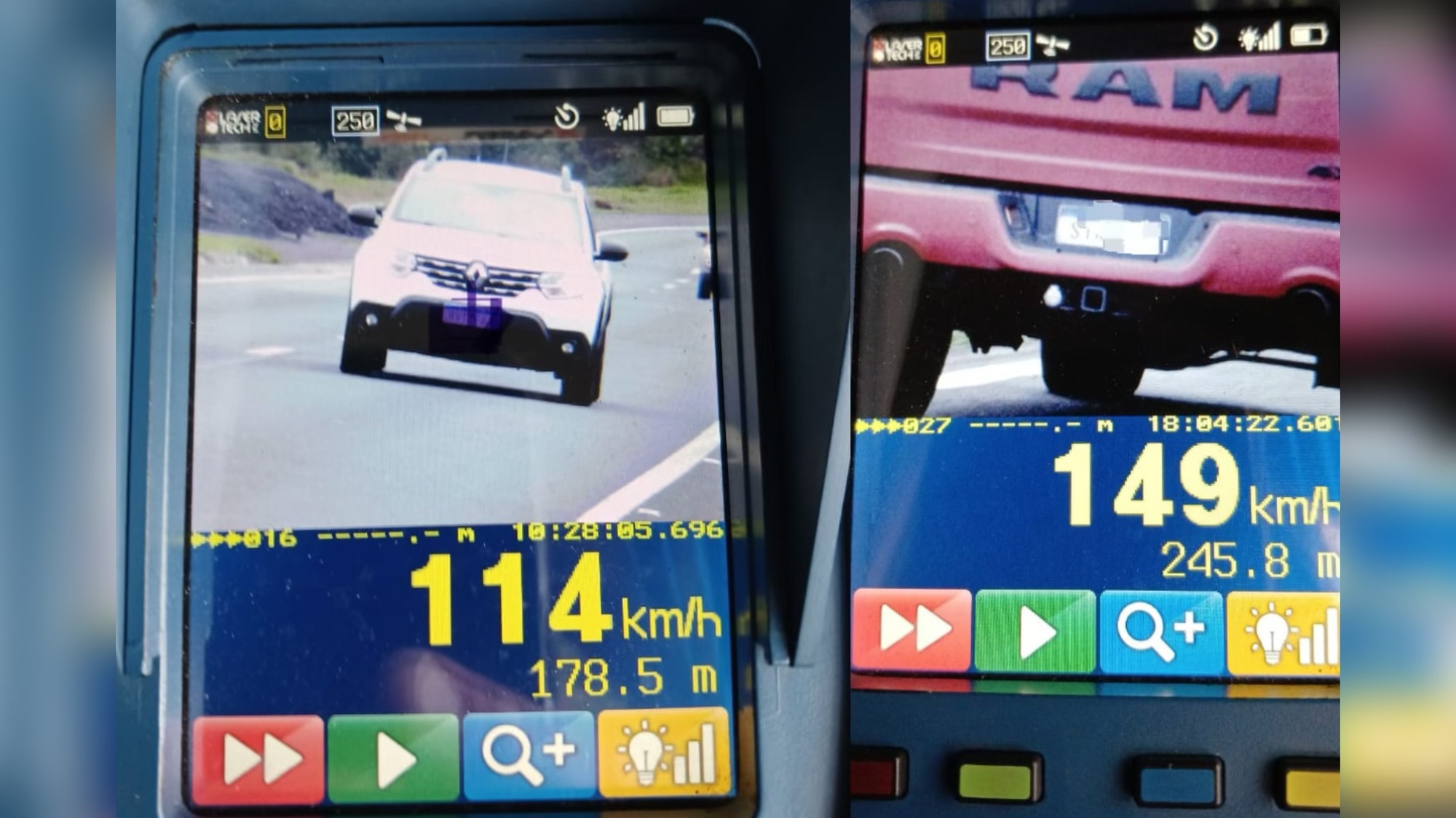 Na última segunda-feira, 21, a Polícia Rodoviária Estadual (BPRv) de Ponta Grossa realizou duas operações de radar em trechos da PR-151 no município de Carambeí, resultando na autuação de 23 motoristas. A primeira operação ocorreu entre 9h e 12h no km 307+300 metros da rodovia, onde 51 veículos foram flagrados por imagens de radar, com a maior velocidade registrada sendo 114 km/h, no limite de 80 km/h da via. Durante esse período, 8 motoristas foram autuados. A fiscalização foi encerrada antes do previsto para que a equipe prestasse apoio a outra operação da companhia. Já a segunda operação aconteceu à tarde, das 14h às 18h, no km 302+400 metros da mesma rodovia. Foram capturadas 54 imagens de veículos, com a maior velocidade registrada sendo 149 km/h, em um trecho com limite de 110 km/h. Ao todo, 15 veículos foram autuados. As operações de radar integram os esforços contínuos da Polícia Rodoviária Estadual para aumentar a segurança nas rodovias, coibindo práticas que colocam em risco a vida de motoristas e pedestres. O foco é reforçar a importância do respeito aos limites de velocidade, especialmente em vias movimentadas como a PR-151.