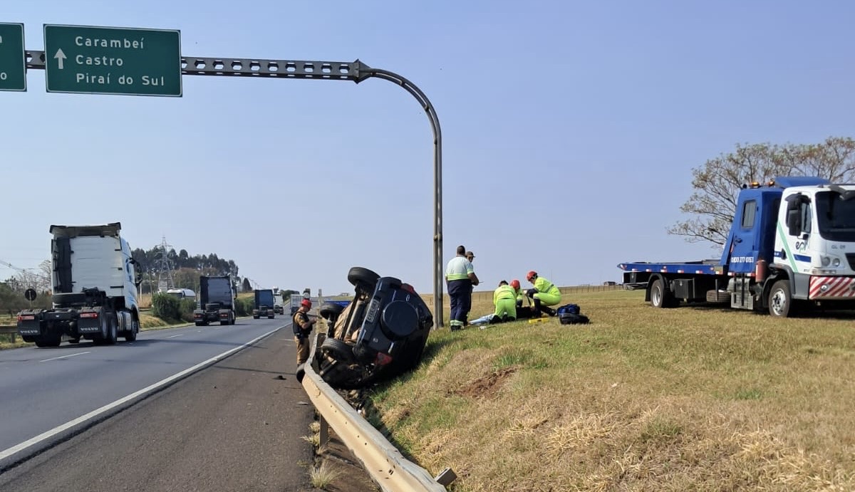 Na manhã deste sábado (31), um acidente foi registrado no km 165+600m da Rodovia PRC 373, no trecho entre a PR 151 e a BR 376, em Ponta Grossa. O sinistro envolveu uma caminhonete Ford Ranger, com placas de Carambeí-PR, que colidiu contra um barranco e, em seguida, capotou. O condutor do veículo, de 43 anos, foi encaminhado à UPA Santa Paula, onde recebeu atendimento para ferimentos leves. As causas do acidente estão sendo investigadas.
