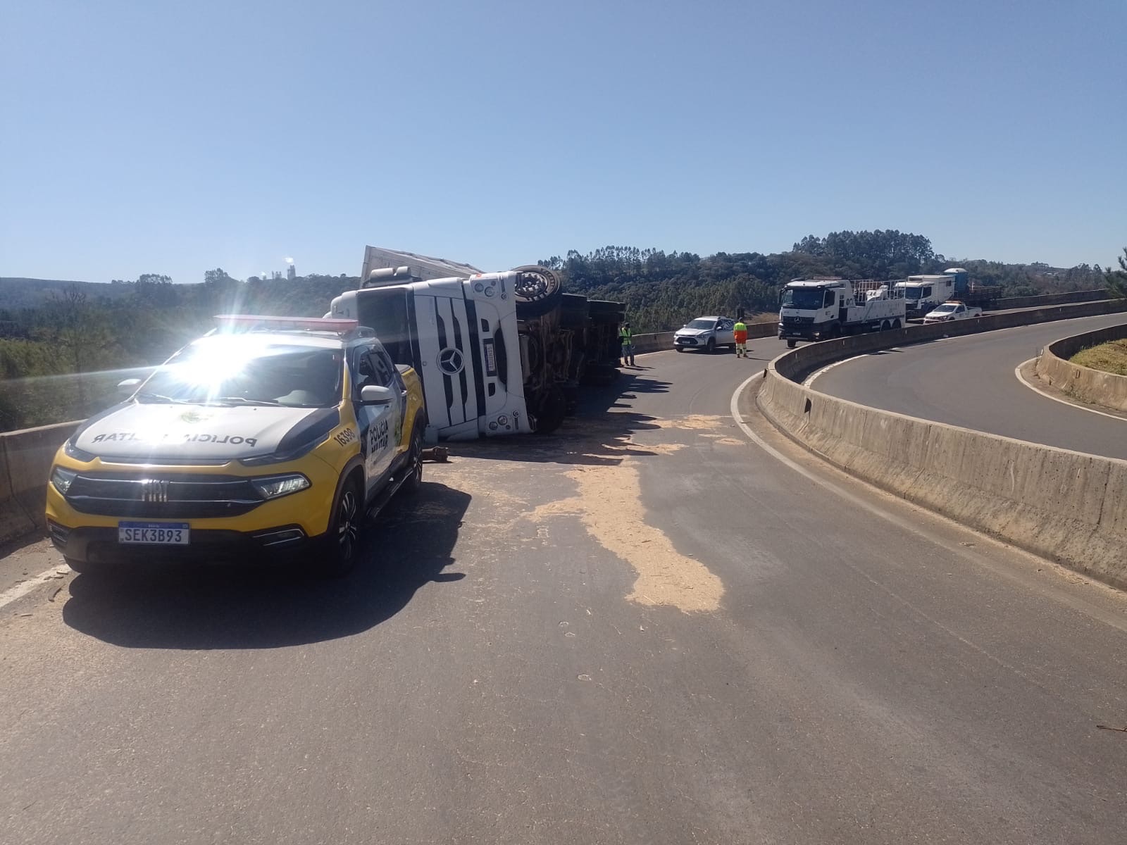 Caminhão tomba na PR-151 e deixa motorista ferido