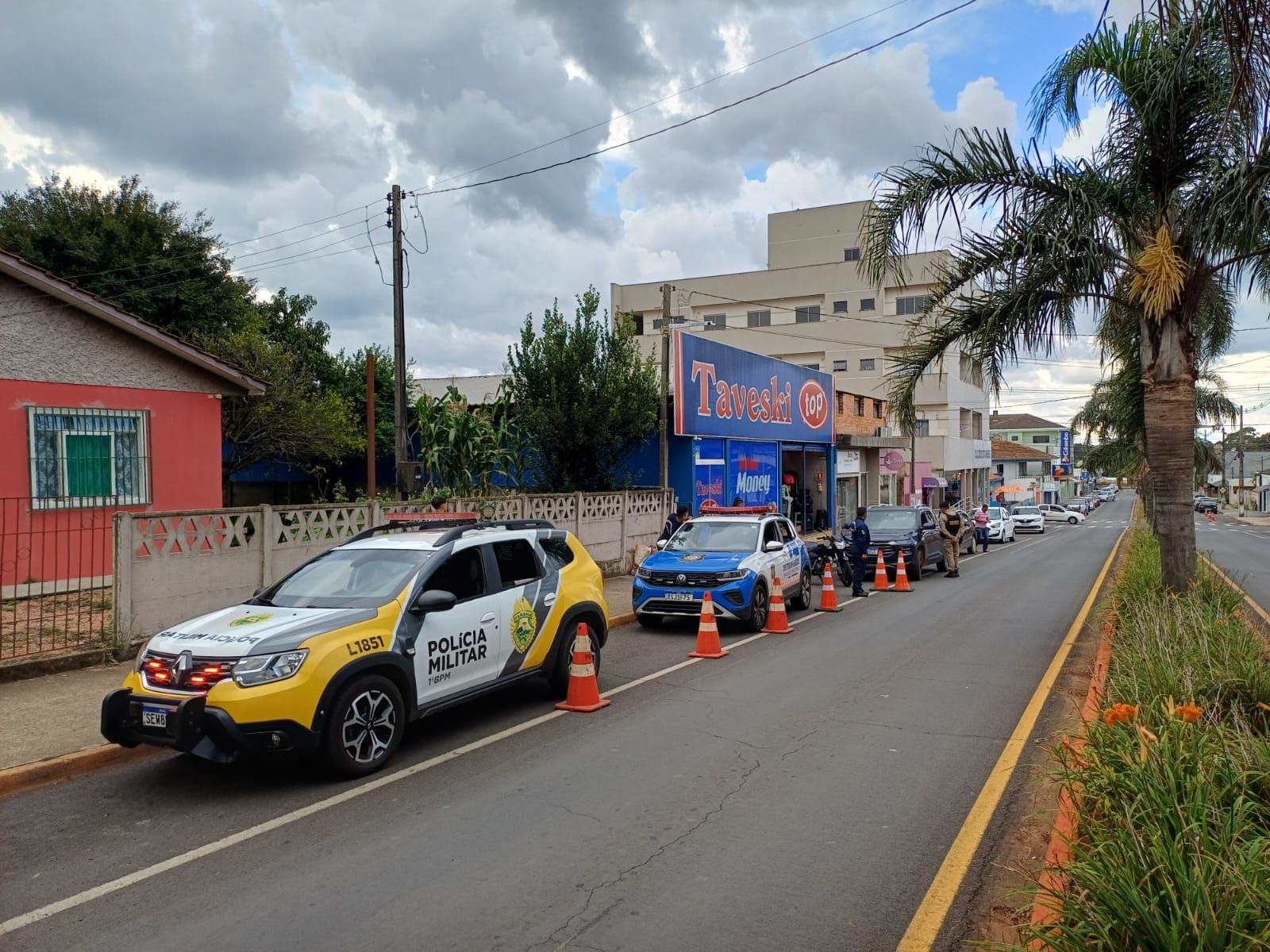 A Polícia Militar de Carambeí realizou, nesta quarta-feira (29), uma Ação Integrada de Fiscalização Urbana (AIFU), com foco na prevenção de ilícitos, fiscalização administrativa e no fortalecimento da presença policial em pontos estratégicos da cidade. A operação ocorreu no período das 14h às 18h e foi coordenada pela Polícia Militar, com apoio de órgãos municipais, por meio do Detransede, contando com a participação de seus agentes. A ação reforçou a integração entre as instituições e a atuação conjunta em prol da ordem pública e da segurança da população. Durante a AIFU, foram fiscalizados quatro locais distintos, incluindo estabelecimentos comerciais e pontos previamente indicados em relatório técnico. Também foram realizados bloqueios viários estratégicos, com o objetivo de saturação da área urbana e aumento da visibilidade das equipes de segurança. Ao longo da operação, foram abordados seis automóveis e uma motocicleta, além da fiscalização de oito pessoas, não sendo constatadas irregularidades relevantes nos locais vistoriados. A Polícia Militar reforça que as Ações Integradas de Fiscalização Urbana são fundamentais para a manutenção da ordem pública, prevenção de crimes e promoção da segurança, garantindo maior tranquilidade à população por meio de ações preventivas, planejadas e coordenadas entre os órgãos envolvidos.