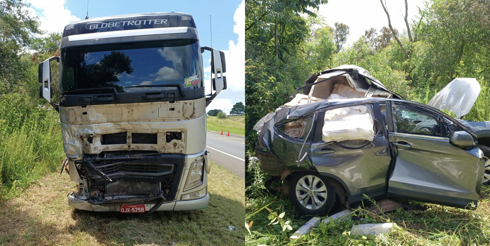Um grave acidente de trânsito registrado na manhã desta quarta-feira (28) resultou na morte de um homem e deixou uma mulher gravemente ferida na PR-151, no município de Piraí do Sul. De acordo com informações do Batalhão de Polícia Rodoviária, o acidente ocorreu por volta das 8h45, no km 240, no trecho entre Jaguariaíva e Piraí do Sul. A ocorrência envolveu três veículos, sendo dois conjuntos de caminhão e um automóvel. Conforme o relato policial, um caminhão Iveco, acoplado a um reboque Randon, seguia pela rodovia no sentido Jaguariaíva–Piraí do Sul, juntamente com um Honda CR-V, quando os veículos se envolveram em uma colisão. Após o impacto, o automóvel rodou na pista e acabou sendo atingido na traseira por outro caminhão Volvo FH, também com reboque, que trafegava no mesmo sentido. O condutor do Honda CR-V, um homem de aproximadamente 50 anos, não resistiu aos ferimentos e morreu no local. A passageira do veículo, uma mulher de 49 anos, sofreu ferimentos graves e recebeu atendimento de emergência. Os condutores dos caminhões envolvidos não se feriram. A Polícia Rodoviária Estadual realizou o atendimento da ocorrência, controlou o tráfego na rodovia e acionou os órgãos competentes para os procedimentos legais. As causas do acidente serão apuradas pelas autoridades responsáveis.