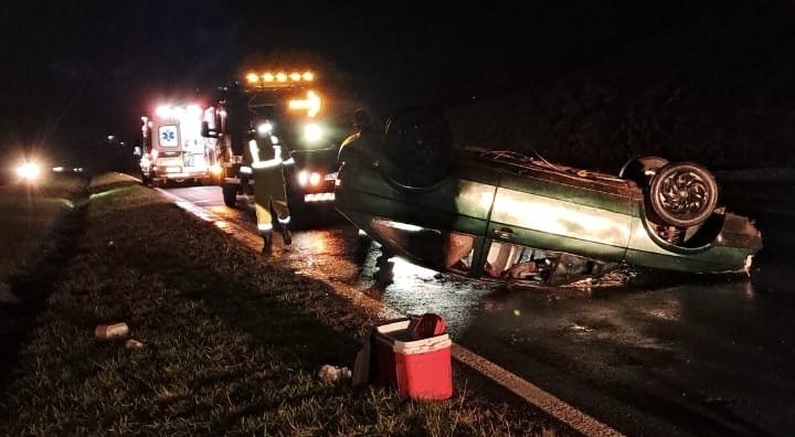 Capotamento na PR-151, deixa jovem ferido