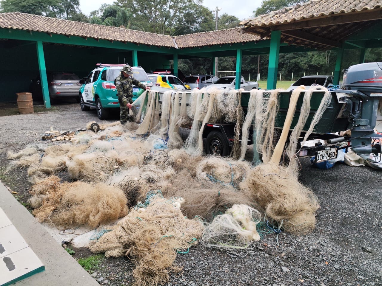 Carambeí: Patrulhamento aquático no ‘Santo André’ apreende material de pesca ilegal