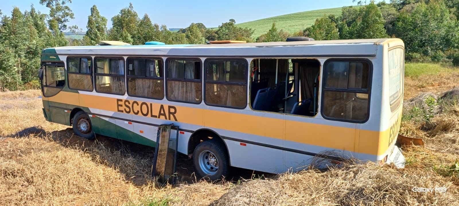 Ônibus sai da pista na PR-090, em Ventania, e deixa nove feridos